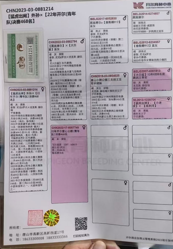 注明:5年以上的老鸽子更换环境有可能造成不能作育,请你谨慎出价