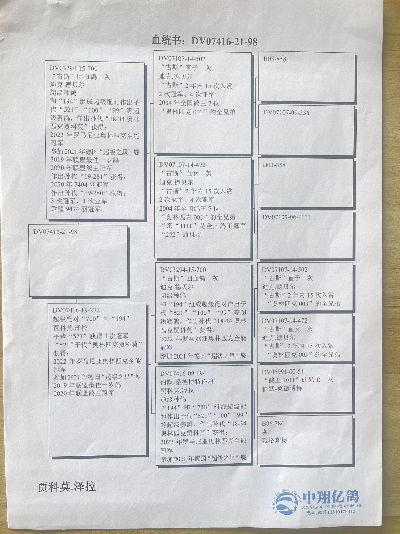 和“194”组成超级配对作出子代“521”“100”“99”等超级赛鸽
