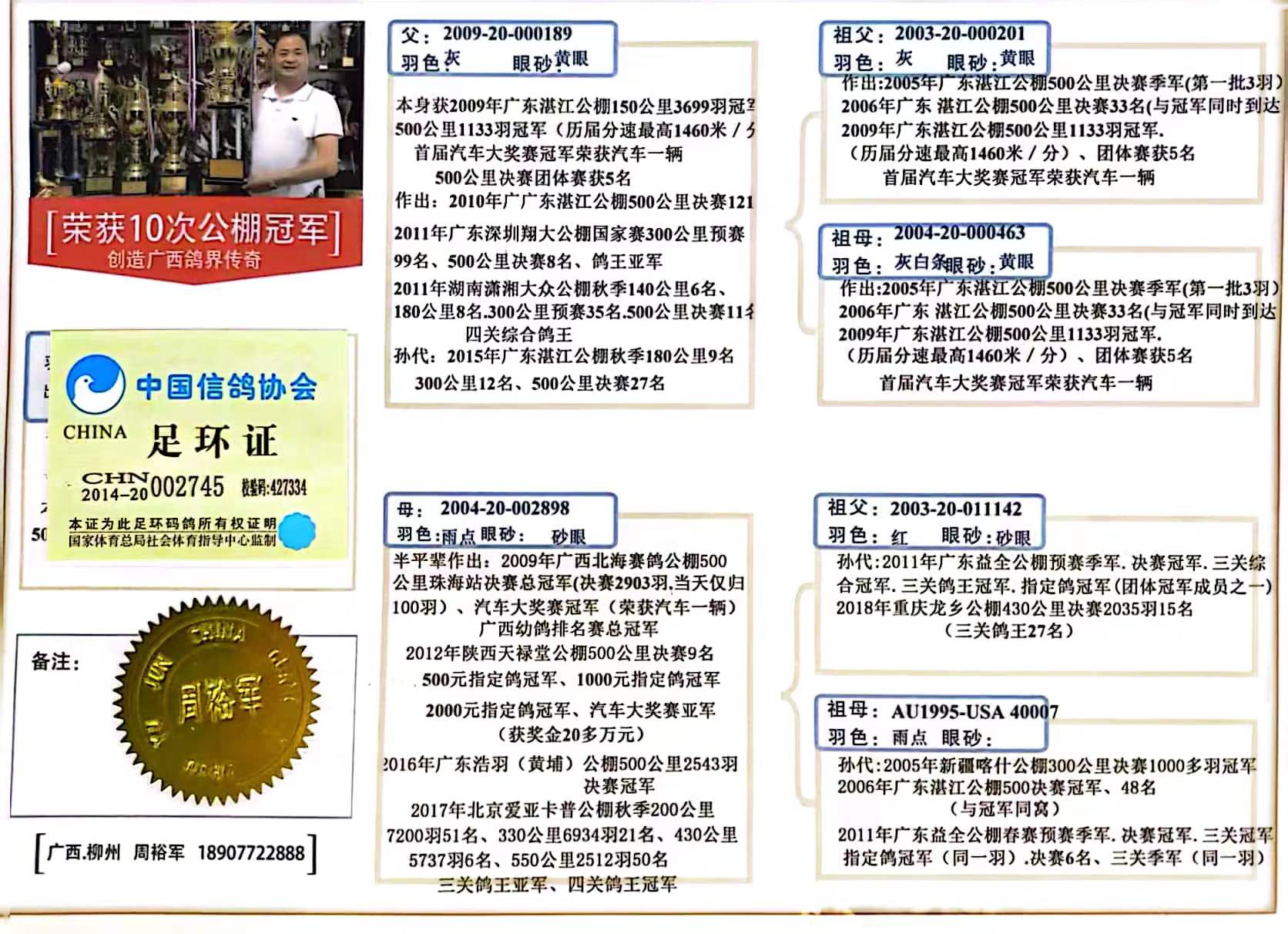 - 当前查看拍卖鸽:西安威力 四关鸽王64名 周裕军