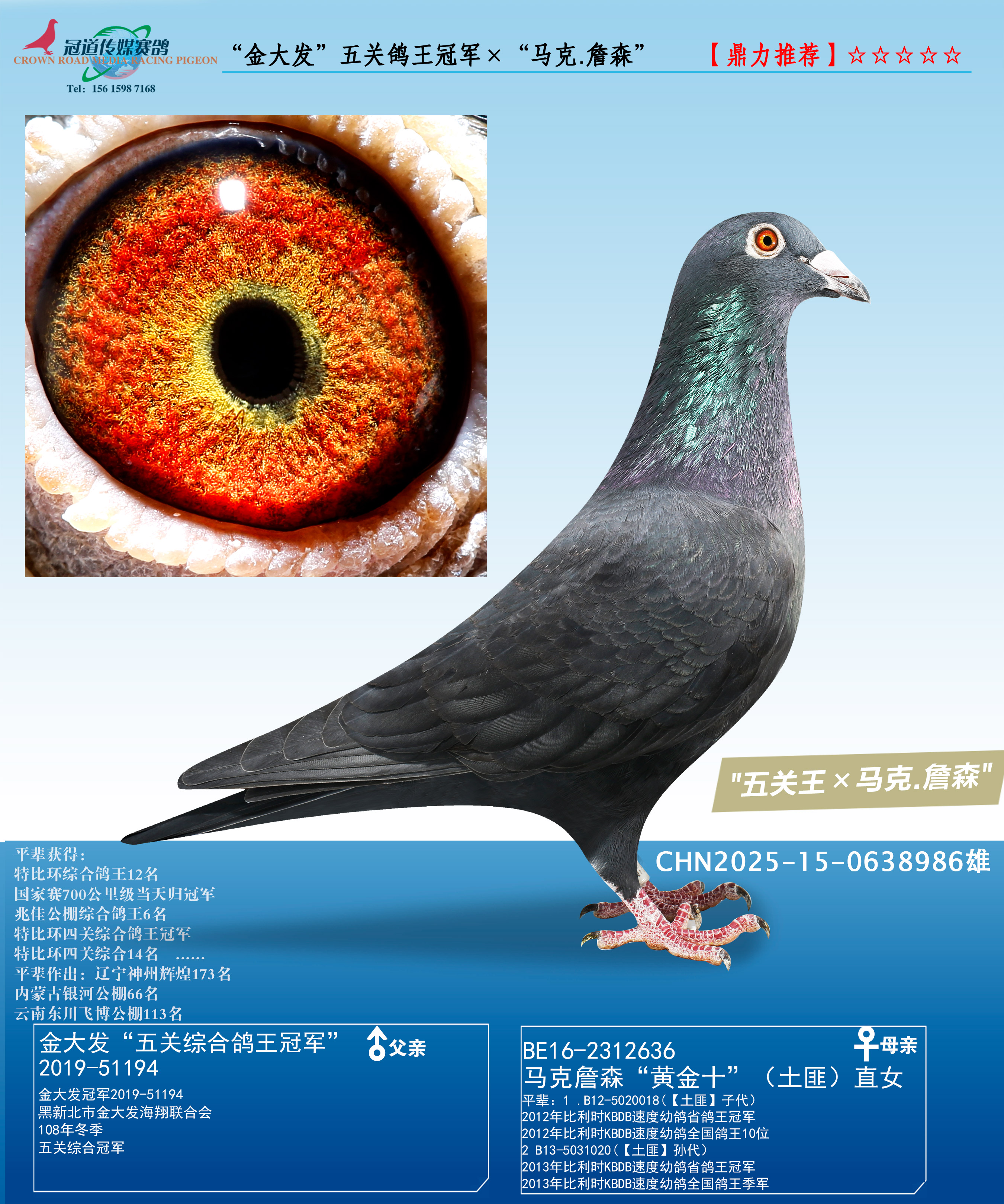 1613371 FCI世界最佳短距离鸽鸽王全国1位(“白人”)近亲 ¥1000元 1次