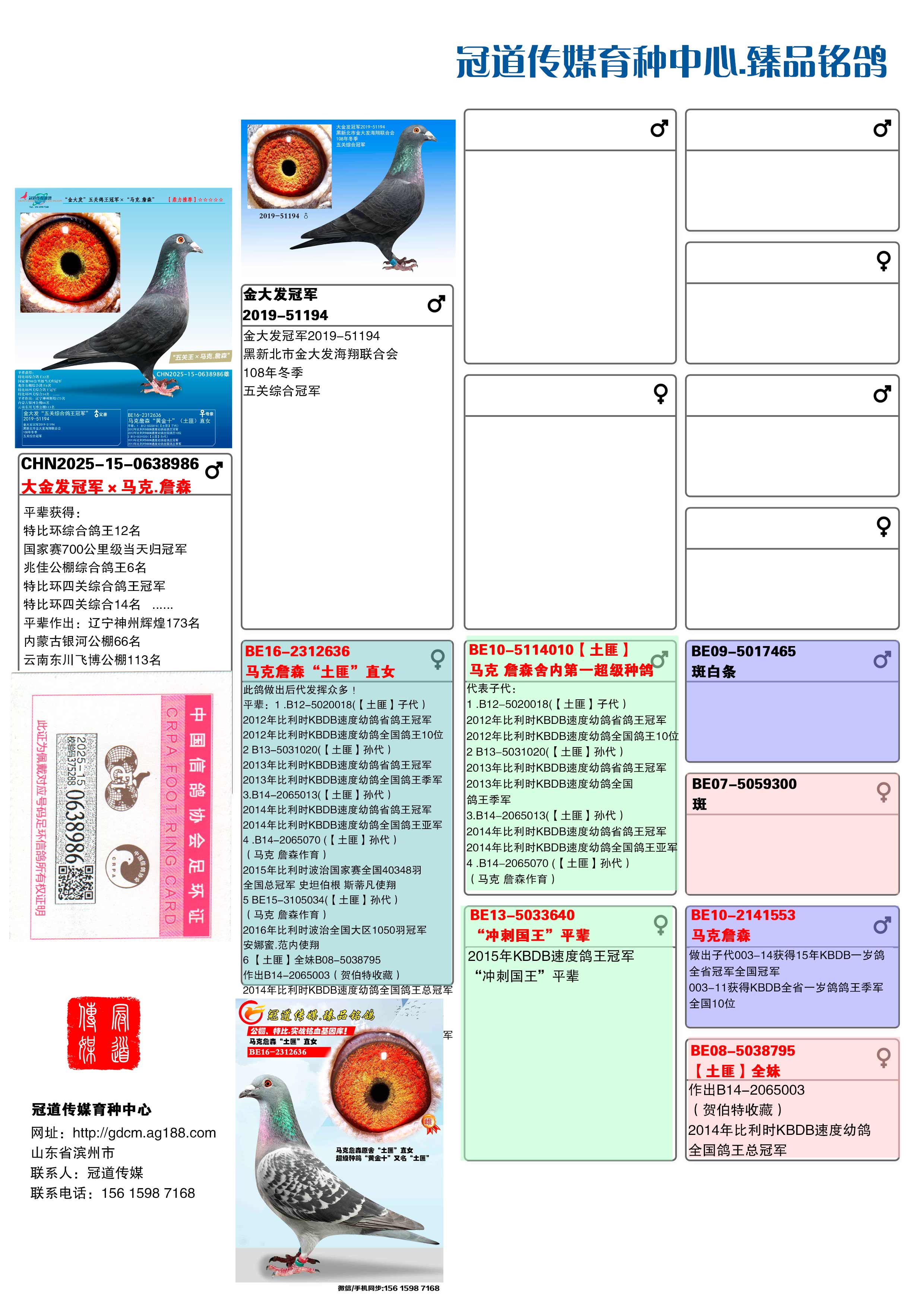 1613372 FCI世界最佳短距离鸽鸽王全国1位(“白人”近亲 ¥1000元 1次