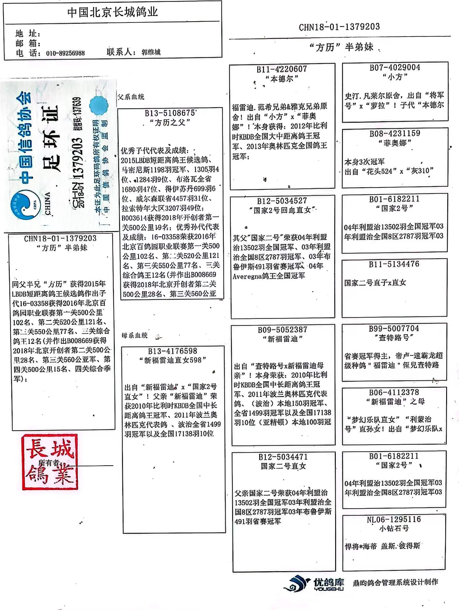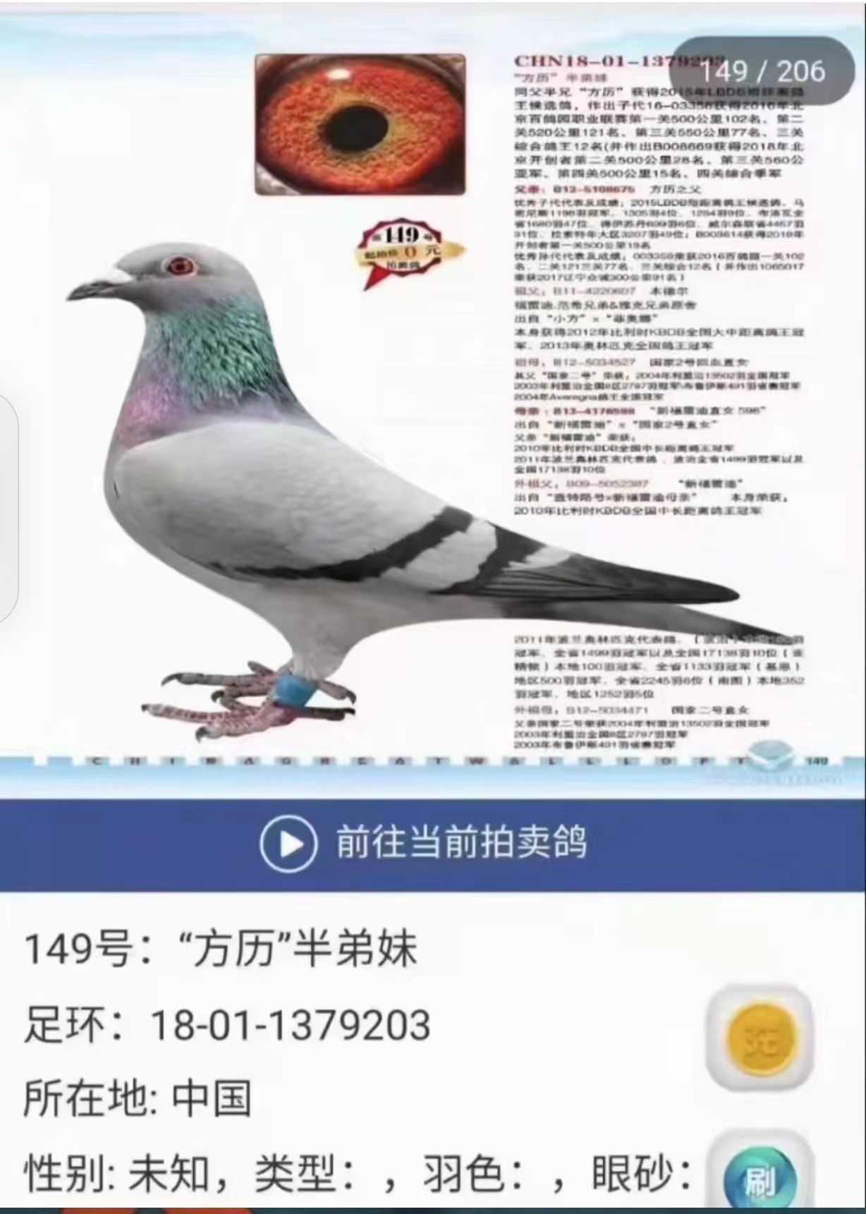 - 当前查看拍卖鸽:“方历半妹” 北京长城鸽业