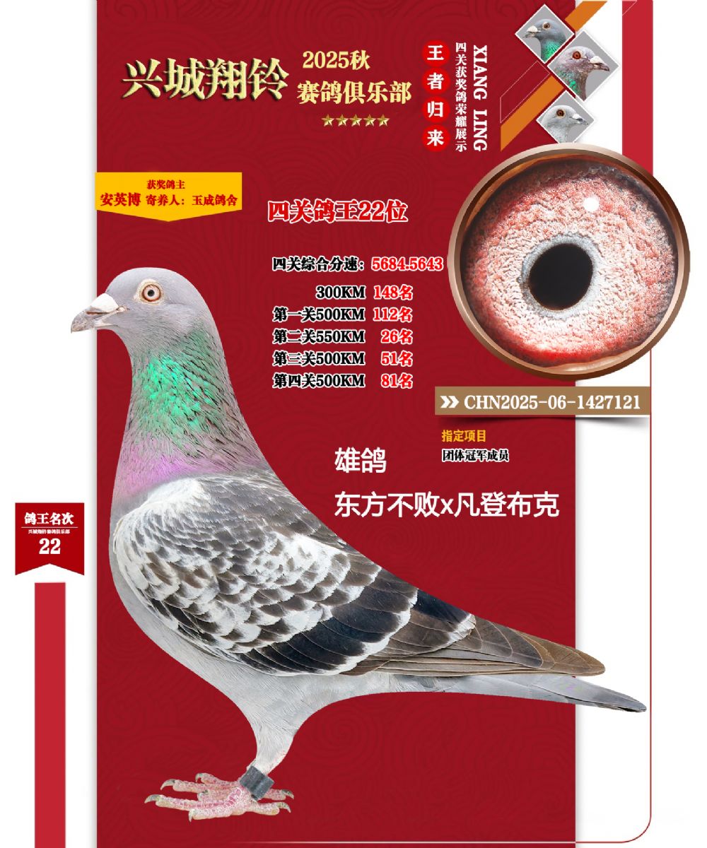 | 1613114 | 强盗号(泰奥·克里克)平辈做出四关鸽王殿军,三关鸽王亚军 | ¥0元 | 0次 |