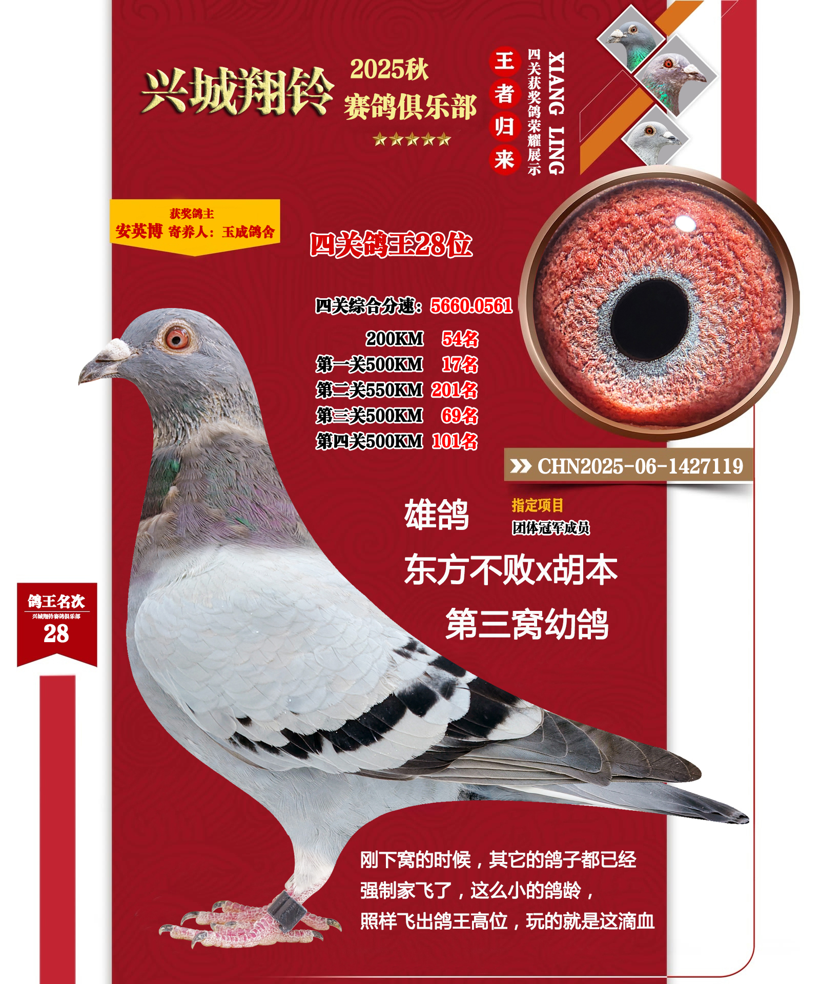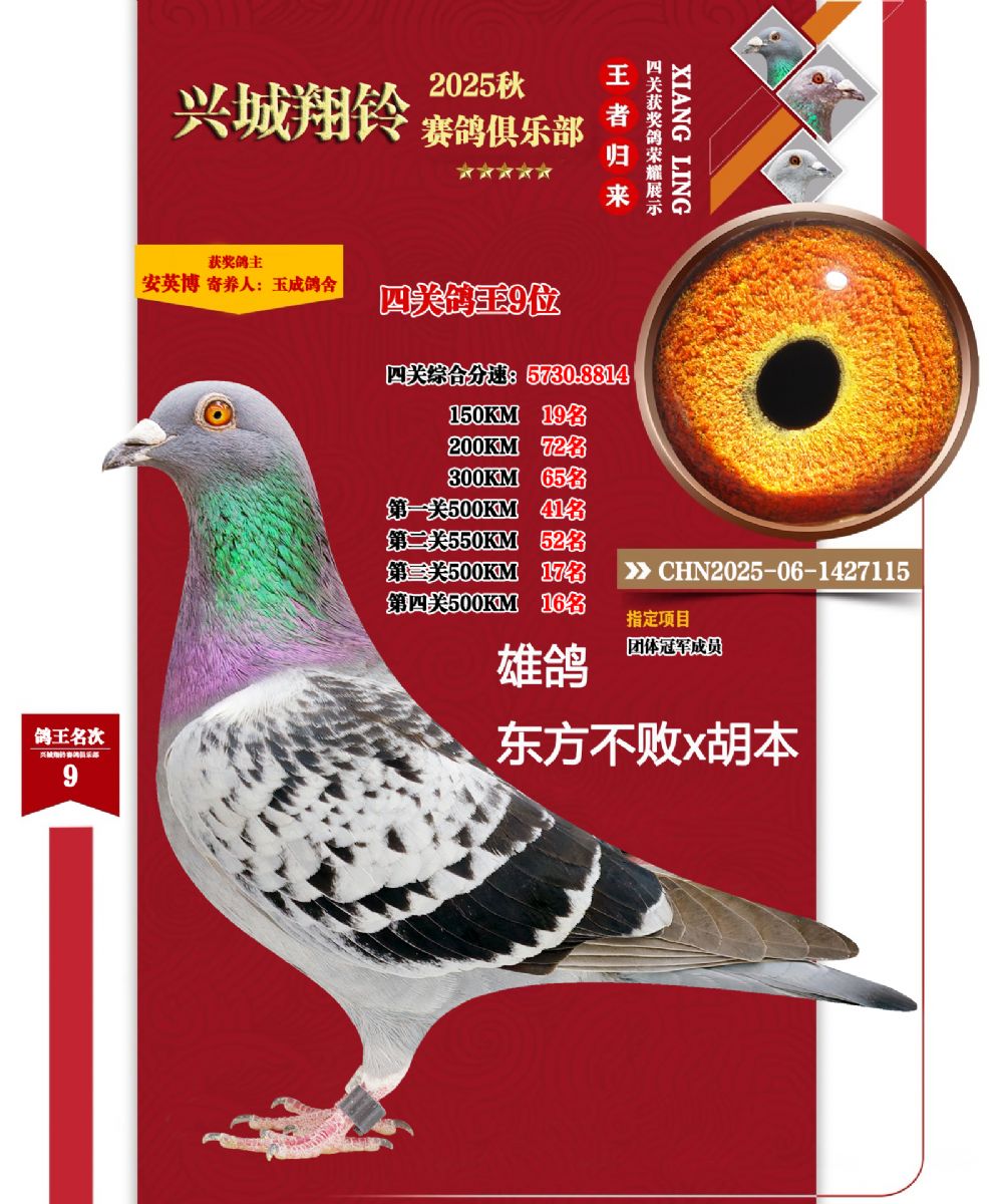 | 1613114 | 强盗号(泰奥·克里克)平辈做出四关鸽王殿军,三关鸽王亚军 | ¥0元 | 0次 |