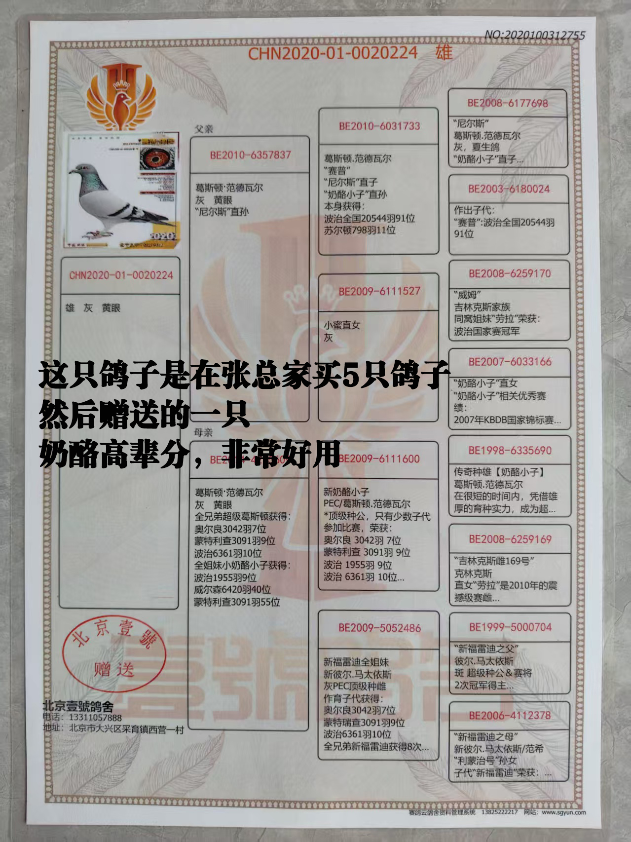 4、本期拍卖鸽有血统书的都已经上传,没有上传的代表没有血统书及足环证,介意勿拍,以免后续发生不必要麻烦。