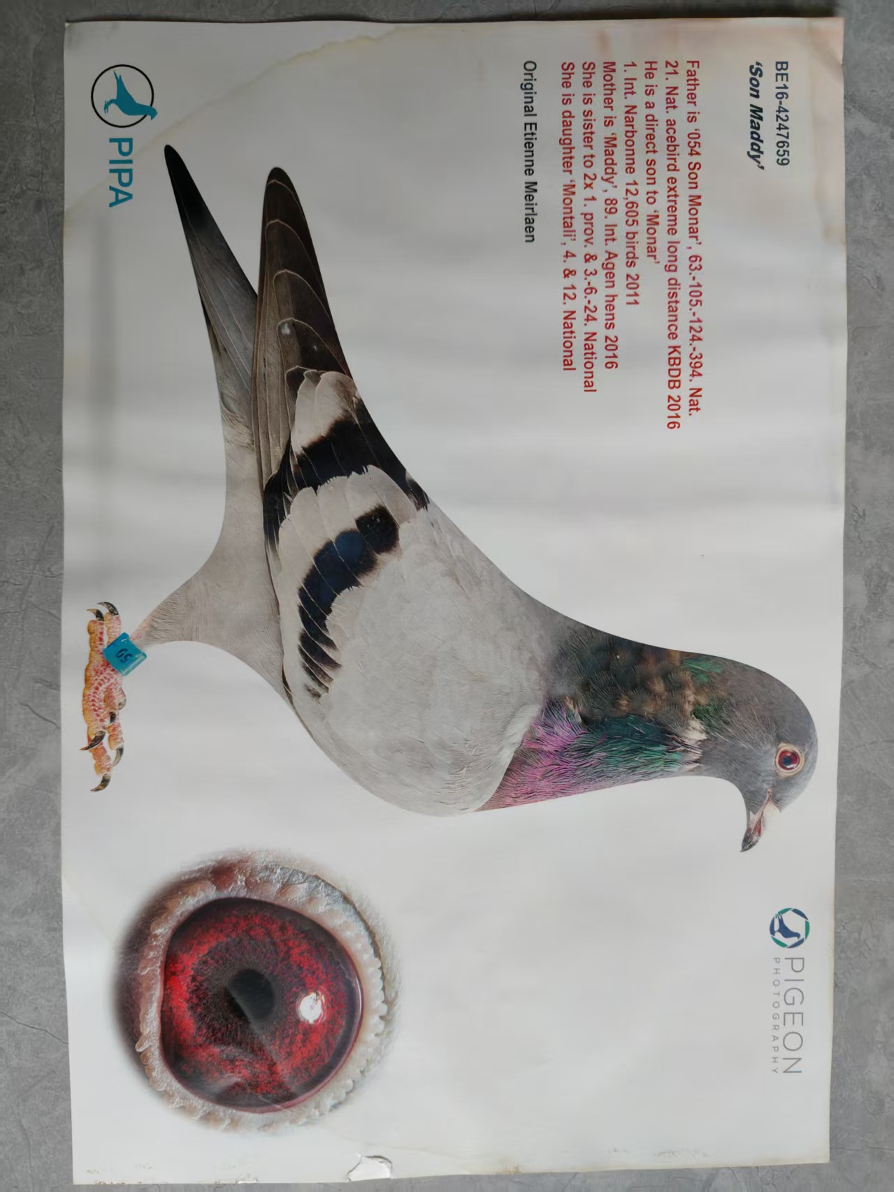 1、由于摄影师为整齐美观在后期制作图片时使用平面反转造成的画面呈现,图片平面反转会导致图片中显示的鸽子所带脚环,与实际鸽子所带脚环相反,这属于正常现象。