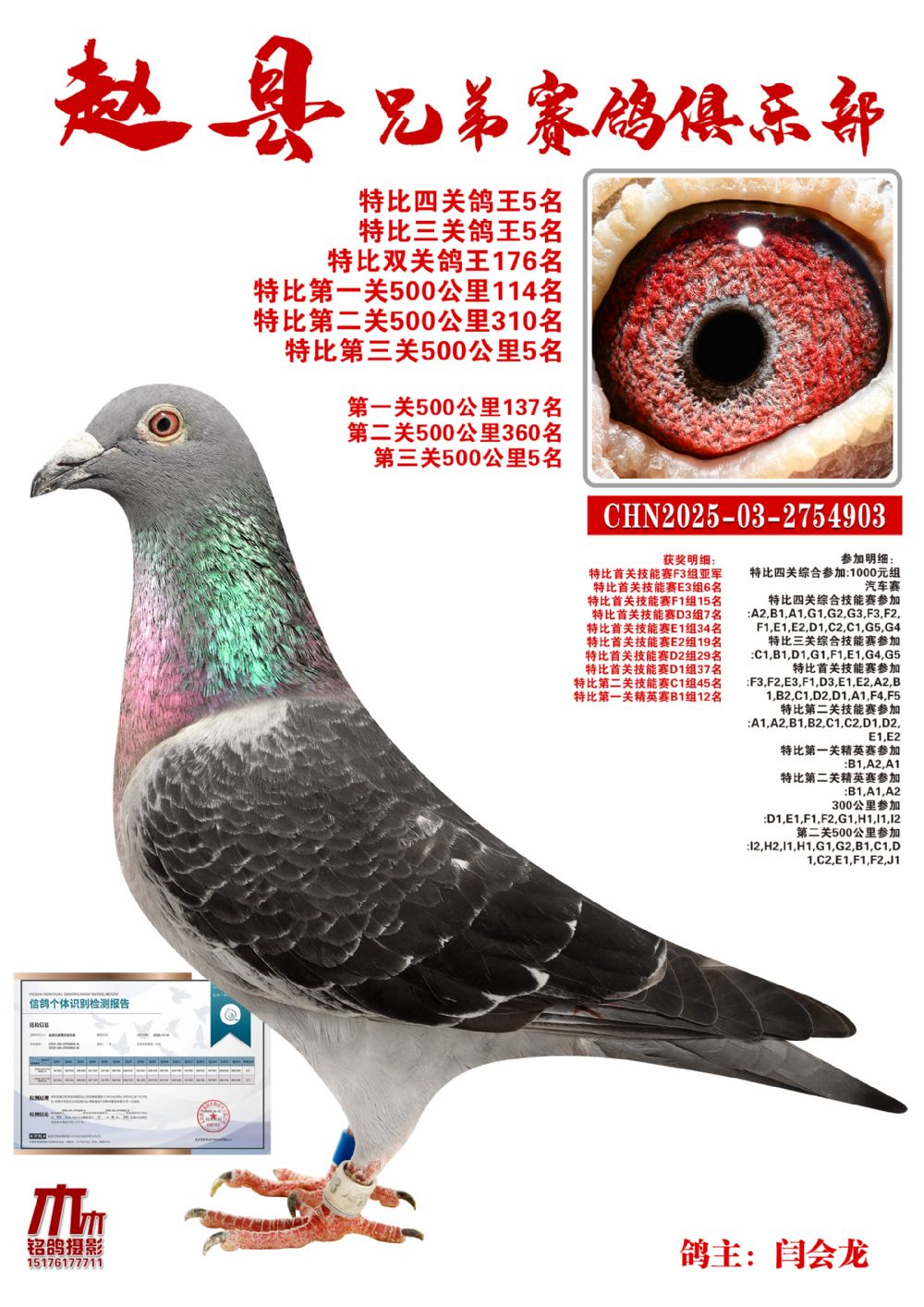 1613151 赵县兄弟特比四关鸽王9名 ¥800元 4次