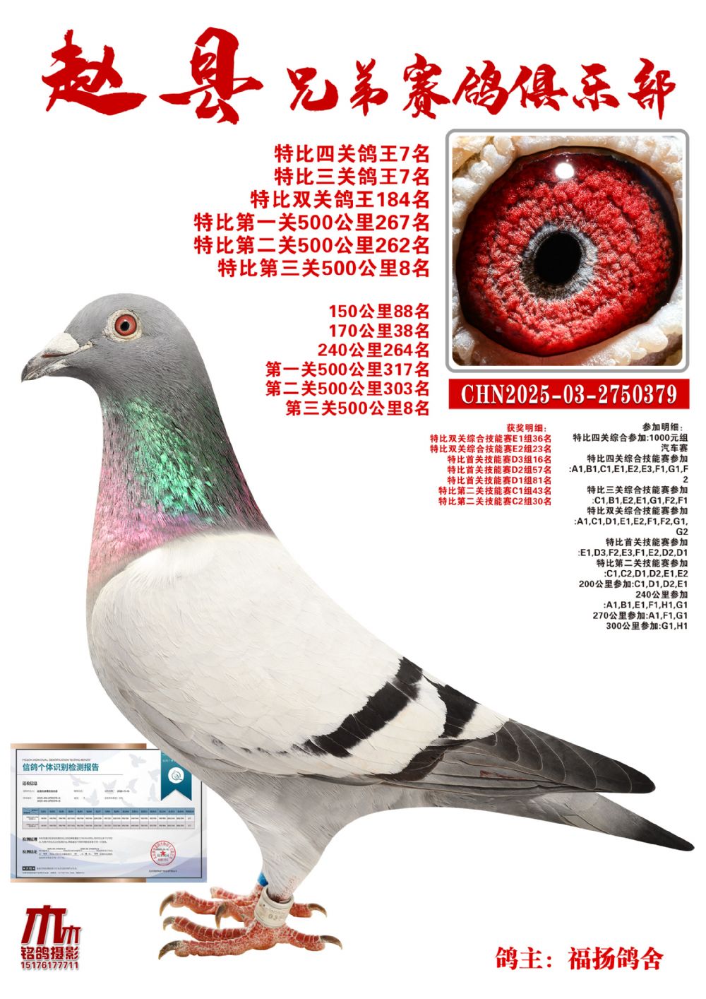 1613145 赵县兄弟特比四关鸽王季军 ¥5000元 15次