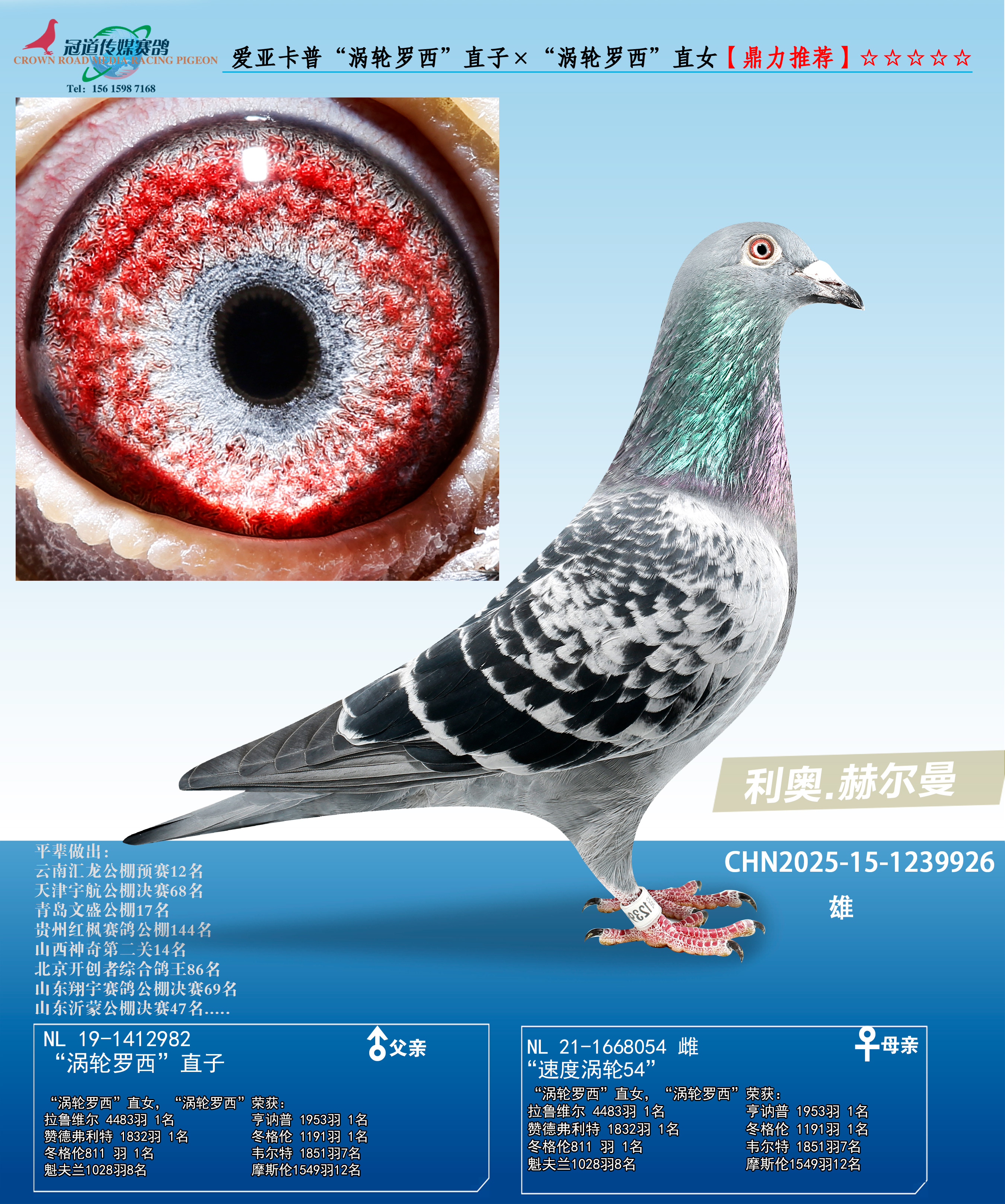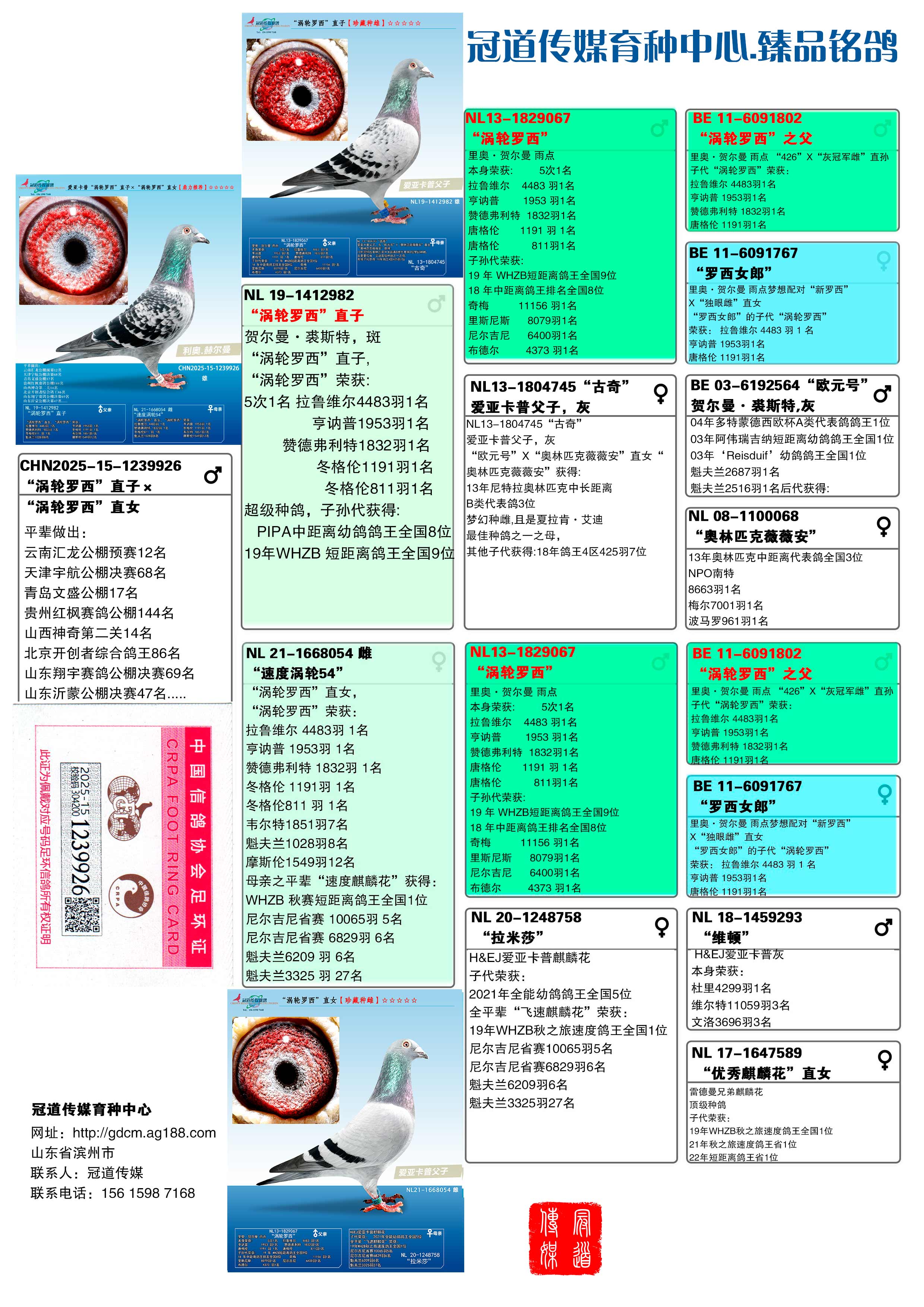 1613371 FCI世界最佳短距离鸽鸽王全国1位(“白人”)近亲 ¥1000元 1次