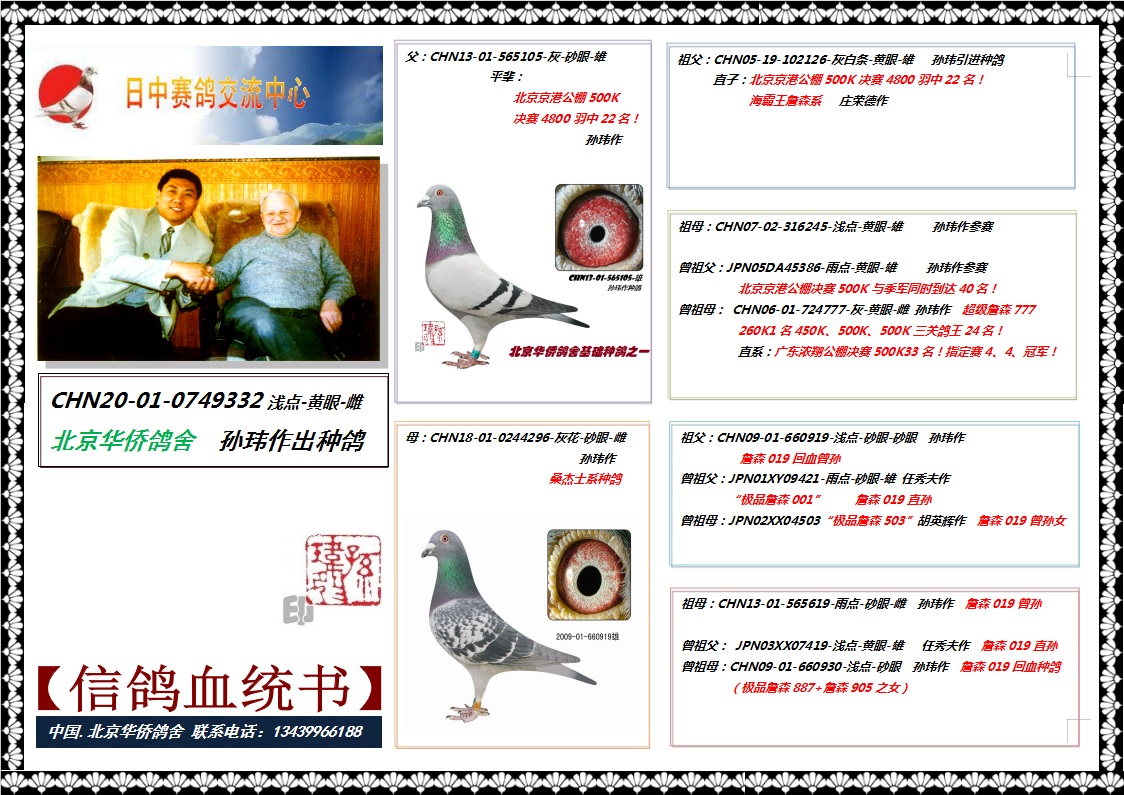 | 1613296 | 3号--詹森019系291直系500K三关综合鸽王10名 | ¥1000元 | 0次 |