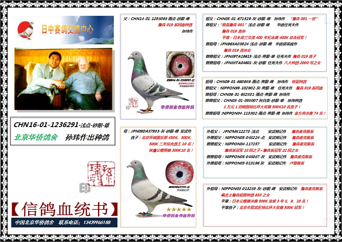 - 当前查看拍卖鸽:3号--詹森019系291直系500K三