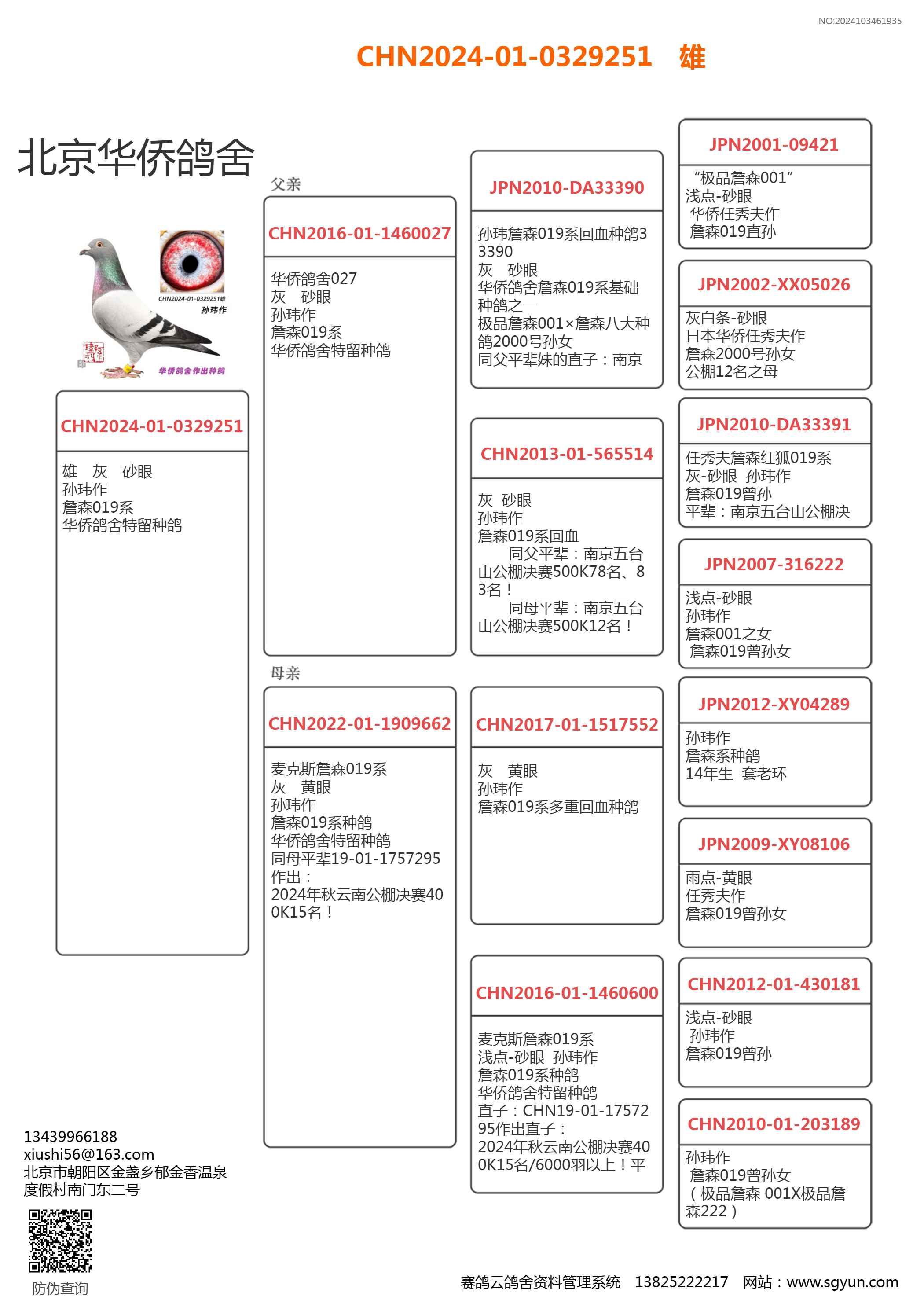 | 1613296 | 3号--詹森019系291直系500K三关综合鸽王10名 | ¥1000元 | 0次 |