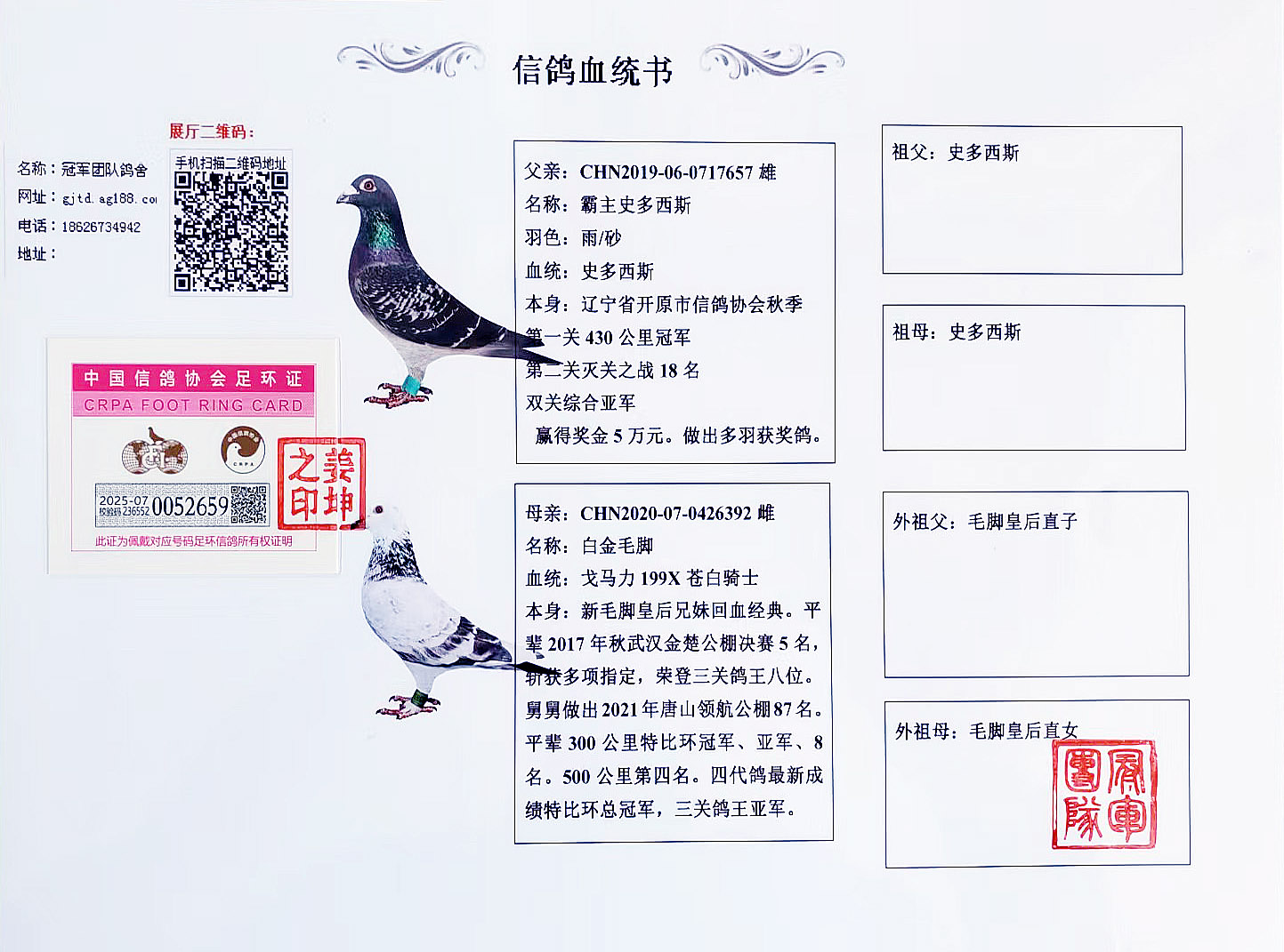 血统书足环卡随鸽发出,低价位高品质幼鸽,种赛皆宜。良心做人,所有成绩血统假一赔百,不做虚假宣传!当暧赘氪菩塾啥嗄昃楹屯雅卸辖龉┎慰迹�