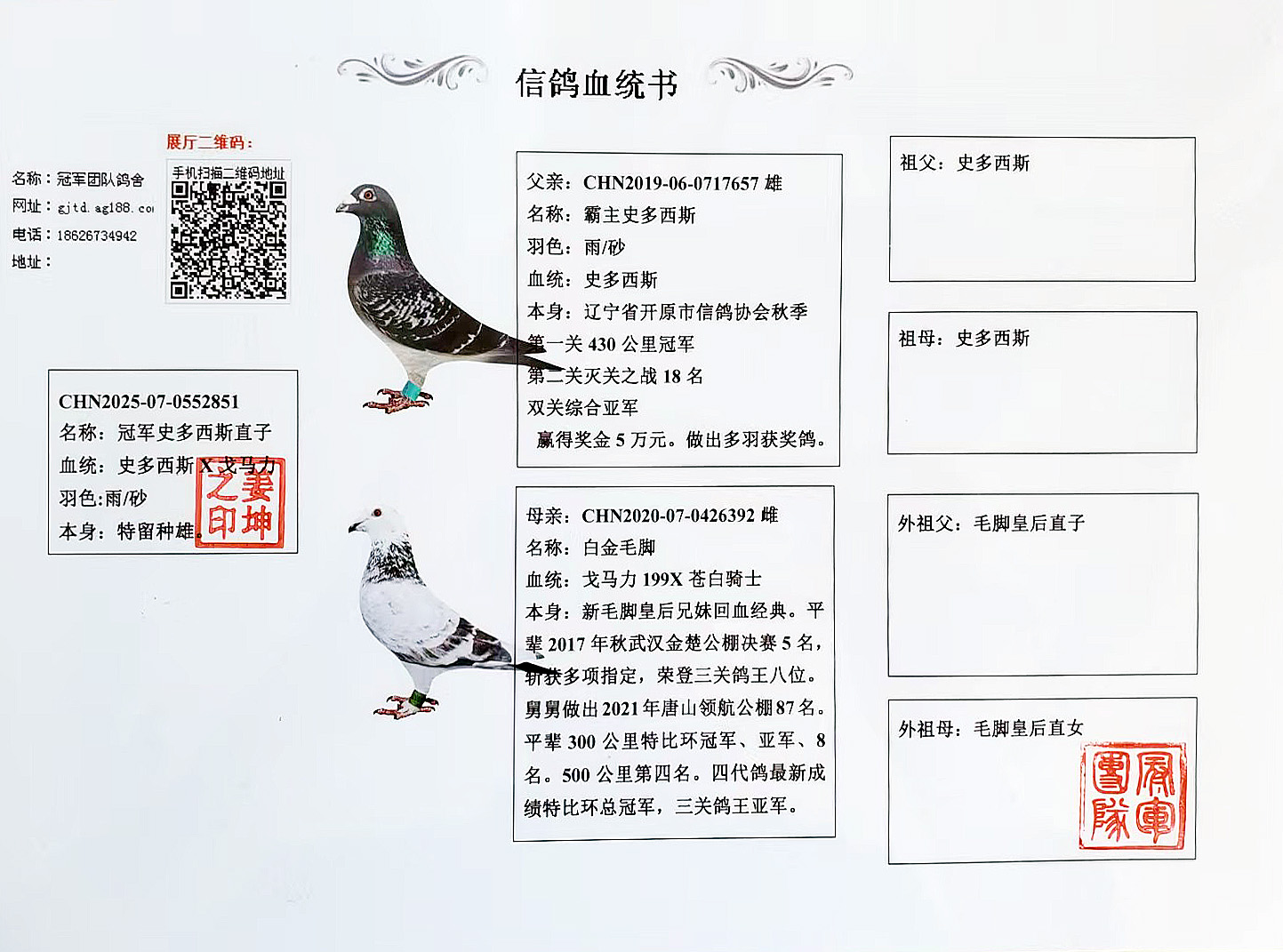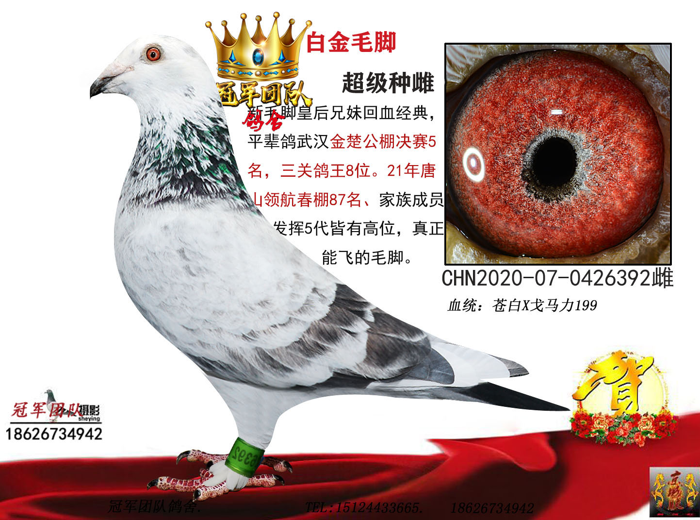 空间有限0元分享,假一赔百,拒卖百家鸽。机不可失。成绩、血统永久保真。血统书足环卡随鸽发出。