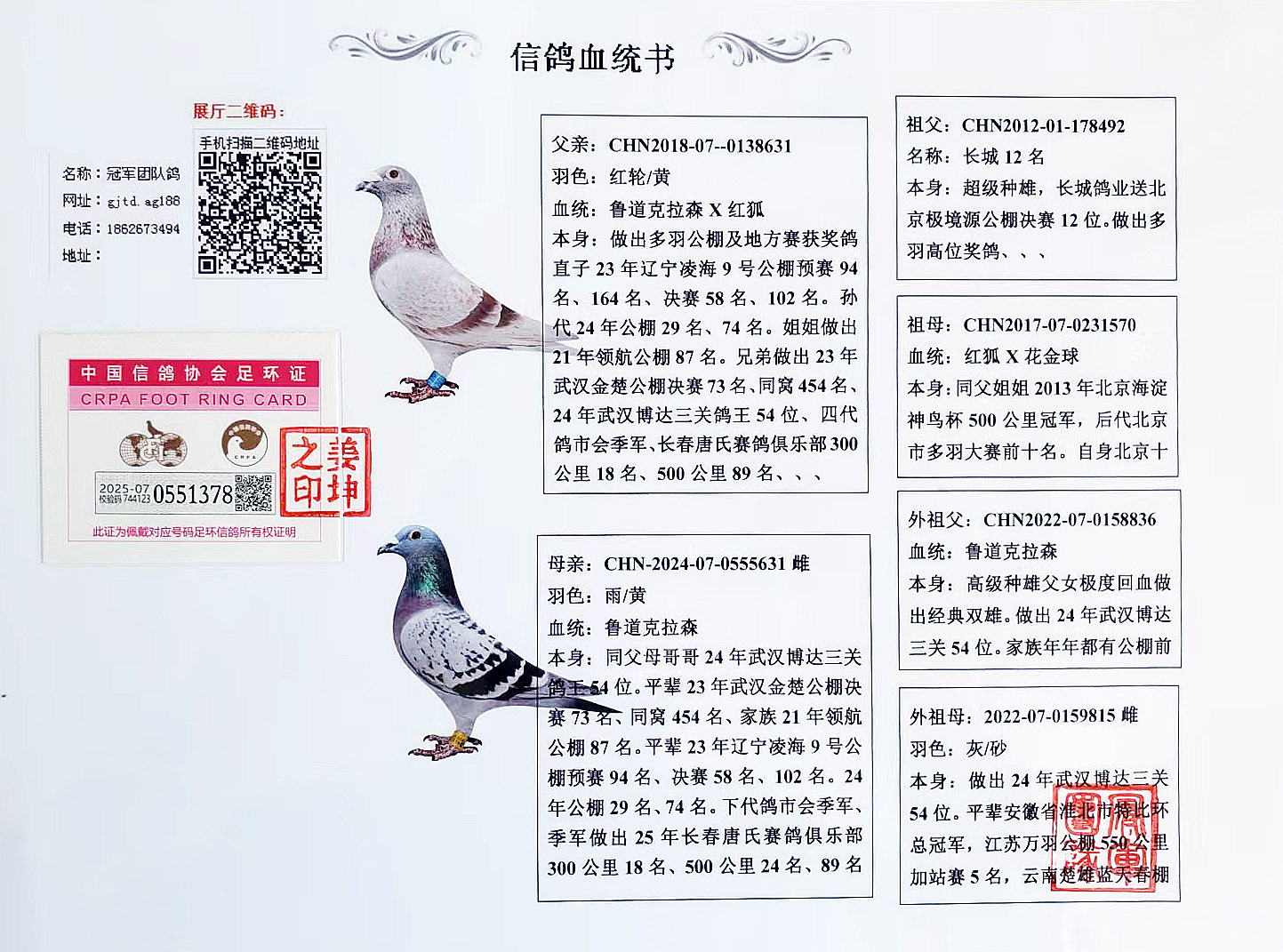 血统书足环卡随鸽发出,低价位高品质幼鸽,种赛皆宜。良心做人,所有成绩血统假一赔百,不做虚假宣传!当暧赘氪菩塾啥嗄昃楹屯雅卸辖龉┎慰迹�
