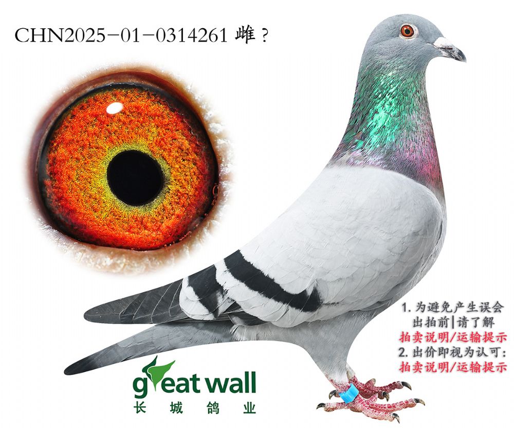 因拍卖鸽均是未做育过的种鸽或幼鸽,图内所标雌雄仅供参考,实际性别已实物为准。