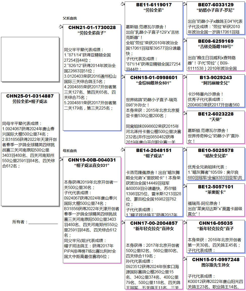 因拍卖鸽均是未做育过的种鸽或幼鸽,图内所标雌雄仅供参考,实际性别已实物为准。