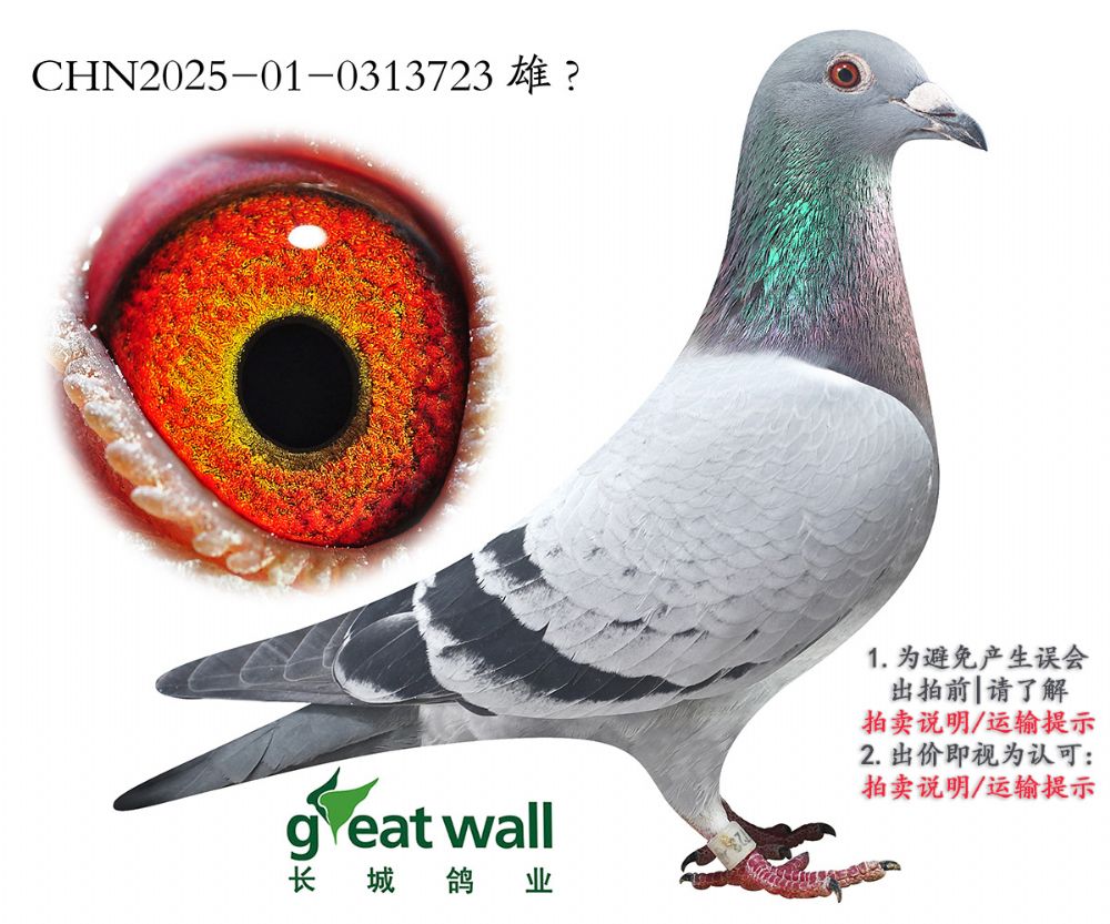 因拍卖鸽均是未做育过的种鸽或幼鸽,图内所标雌雄仅供参考,实际性别已实物为准。