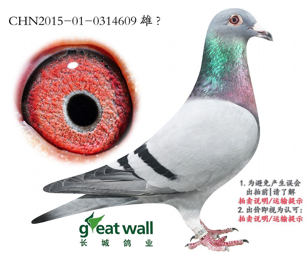 因拍卖鸽均是未做育过的种鸽或幼鸽,图内所标雌雄仅供参考,实际性别已实物为准。