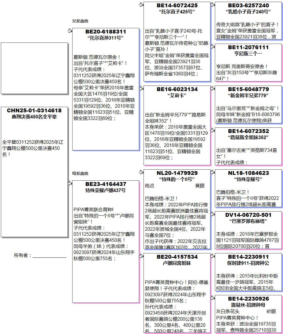 因拍卖鸽均是未做育过的种鸽或幼鸽,图内所标雌雄仅供参考,实际性别已实物为准。