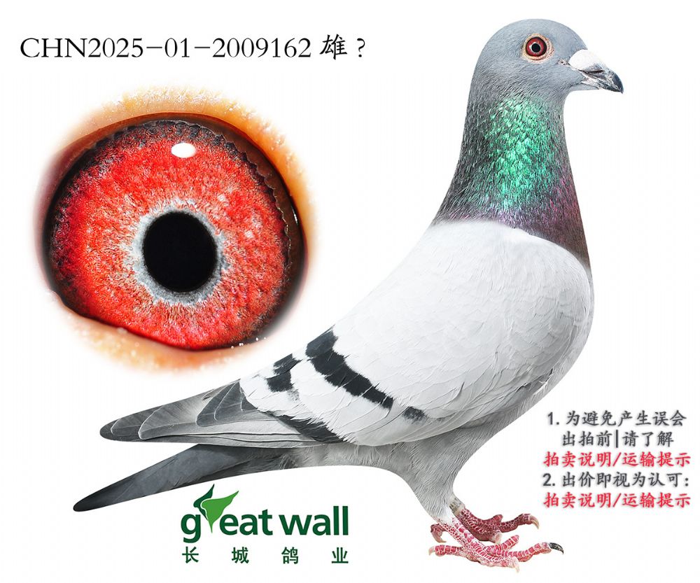 因拍卖鸽均是未做育过的种鸽或幼鸽,图内所标雌雄仅供参考,实际性别已实物为准。