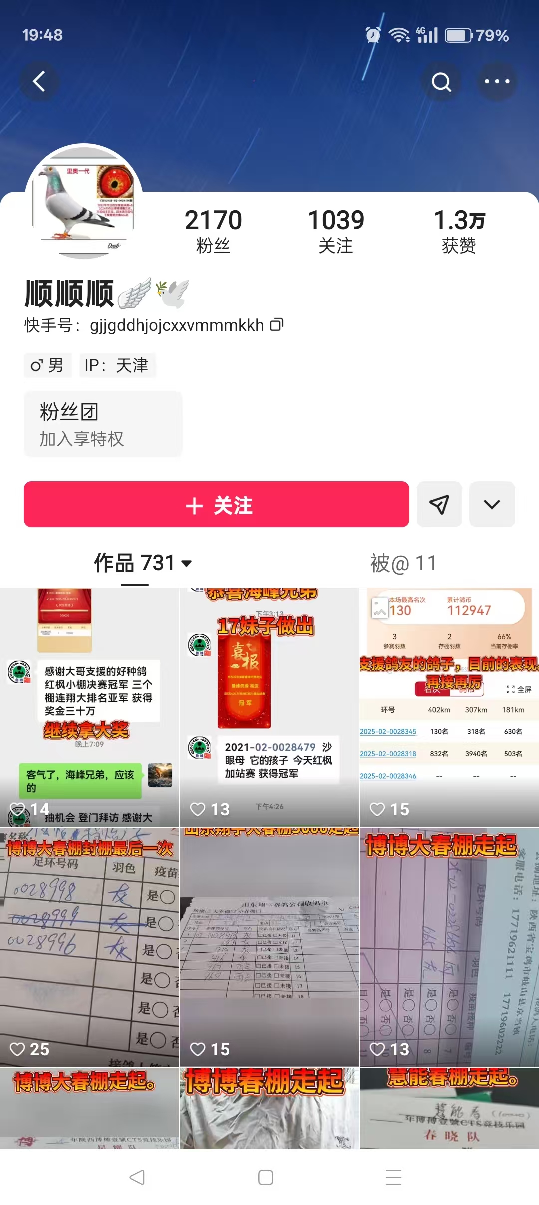 | 1614499 | 基础种鸽决赛359名飞戈金母 | ¥200元 | 1次 |