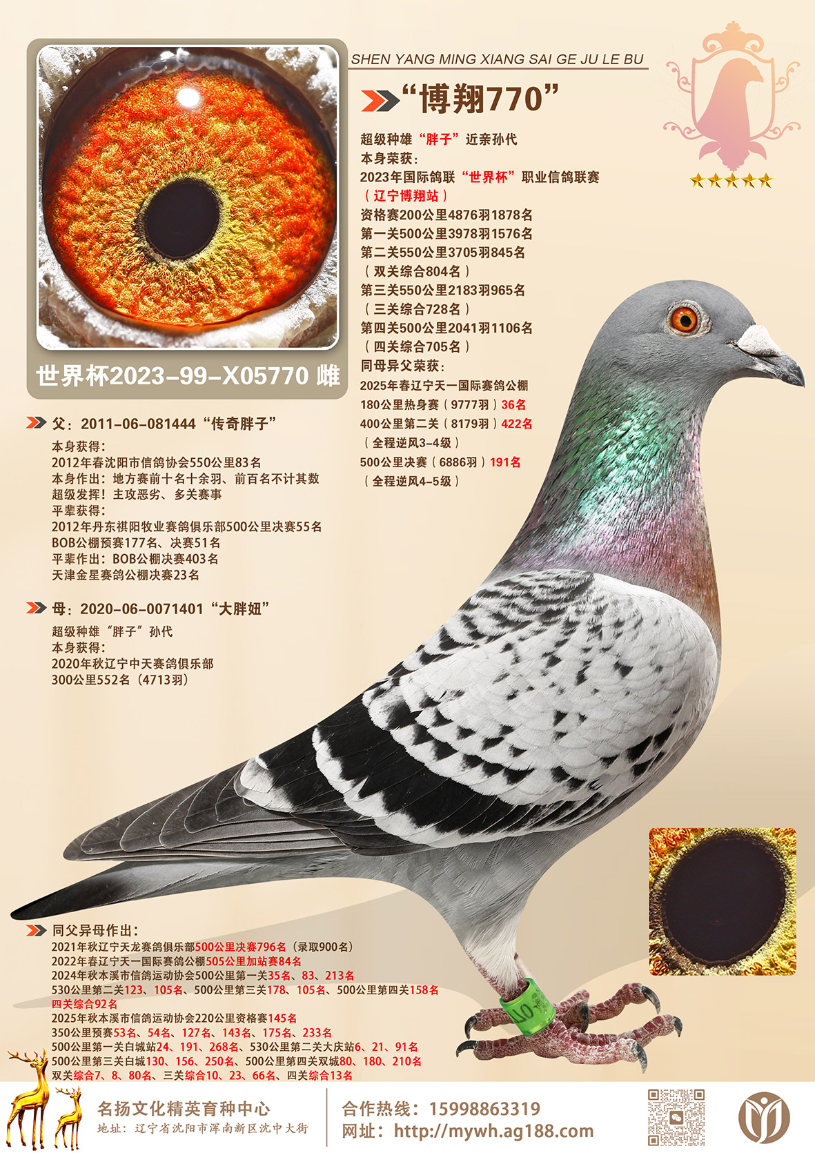 所有拍卖鸽全部血统真实!!个人鉴鸽观点不一,飞不飞天上见.血统成绩第一