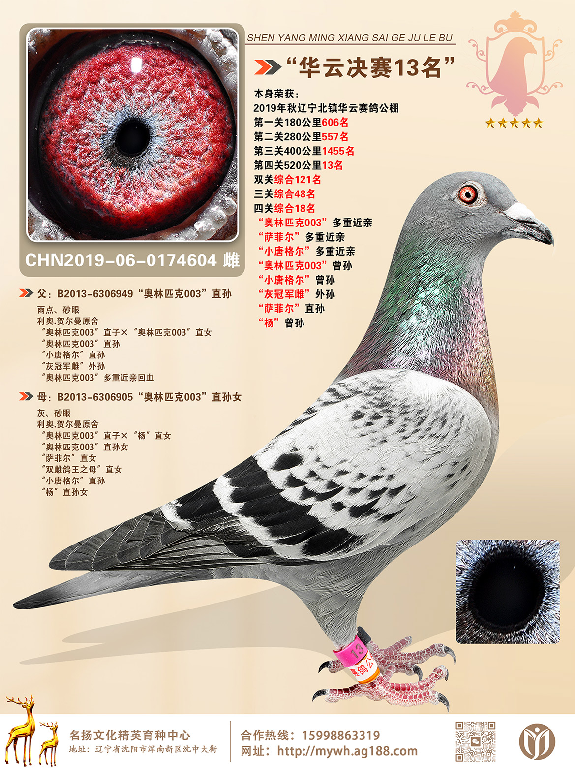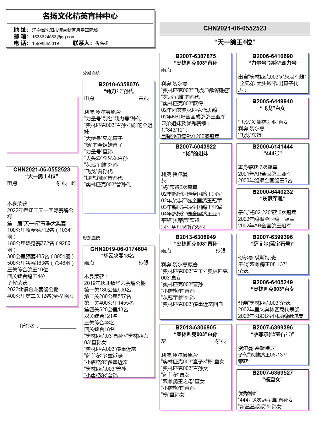 所有拍卖鸽全部血统真实!!个人鉴鸽观点不一,飞不飞天上见.血统成绩第一
