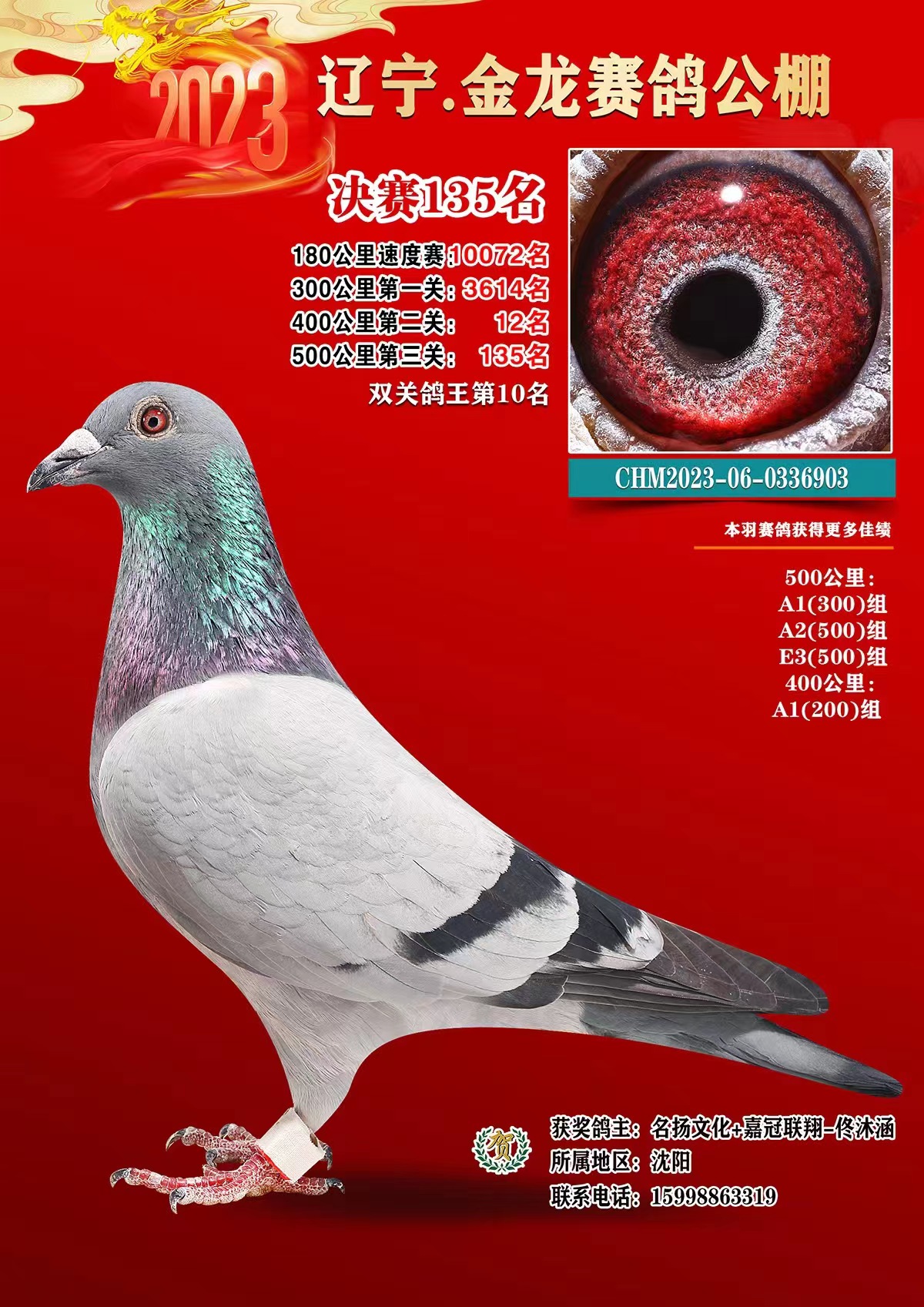 500公里第三关135名(全程顶风4-5级,决赛录取1500名)指定鸽获奖