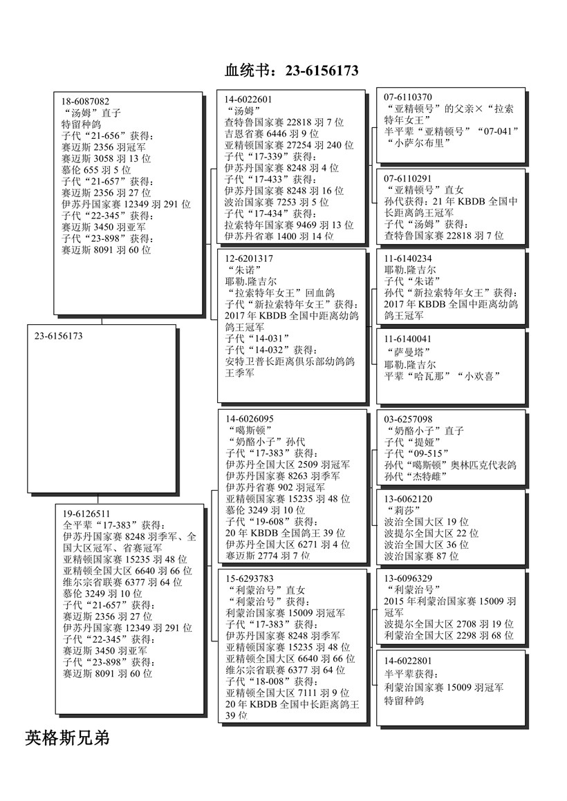 所有拍卖鸽全部血统真实!!个人鉴鸽观点不一,飞不飞天上见.血统成绩第一