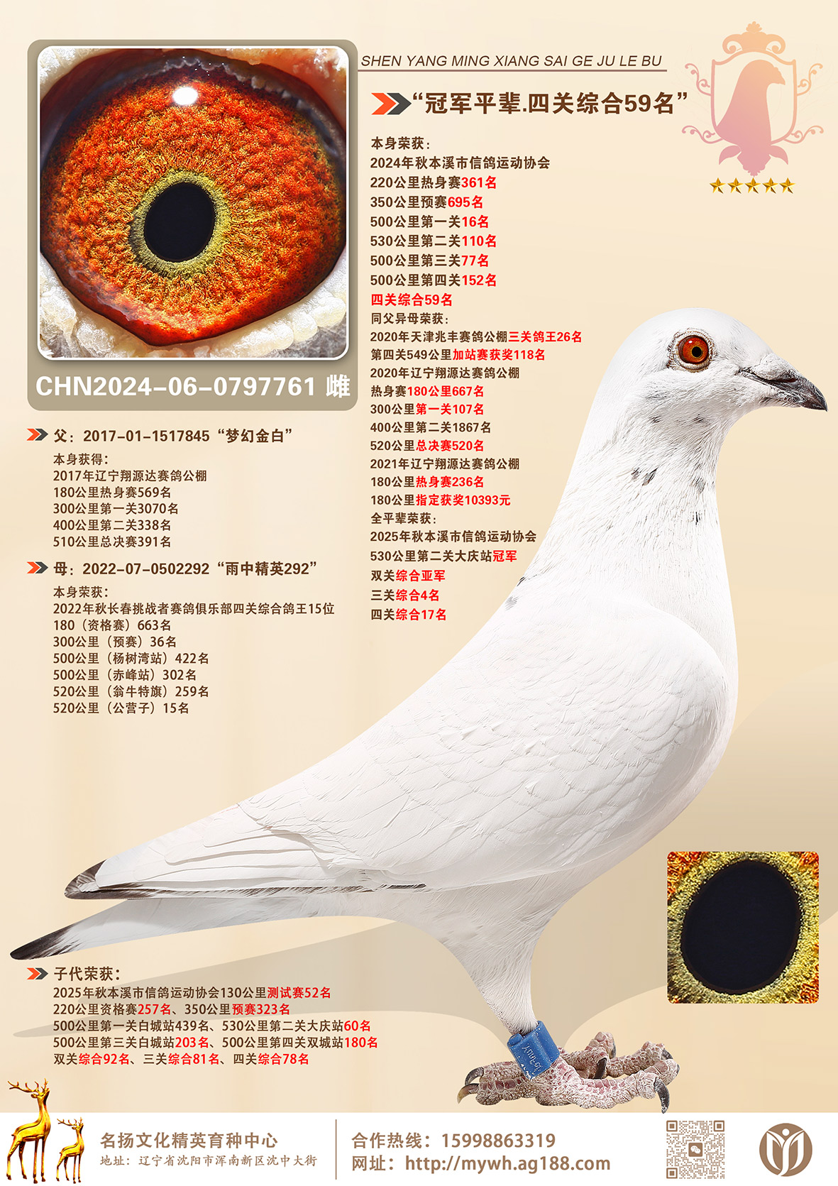所有拍卖鸽全部血统真实!!个人鉴鸽观点不一,飞不飞天上见.血统成绩第一