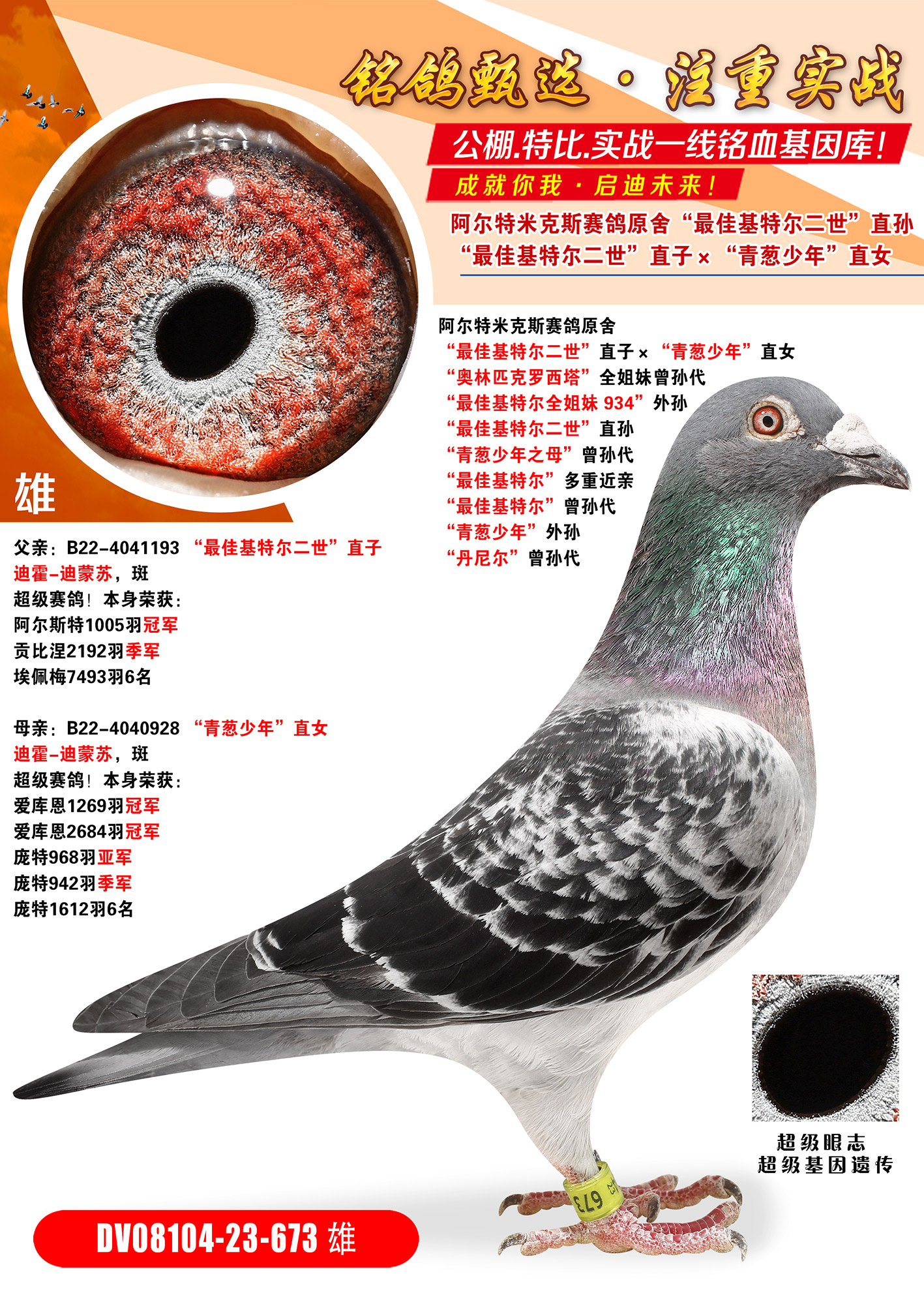 所有拍卖鸽全部血统真实!!个人鉴鸽观点不一,飞不飞天上见.血统成绩第一