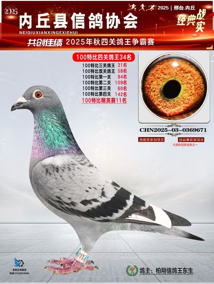 100特比四关鸽王34名 精英赛11名