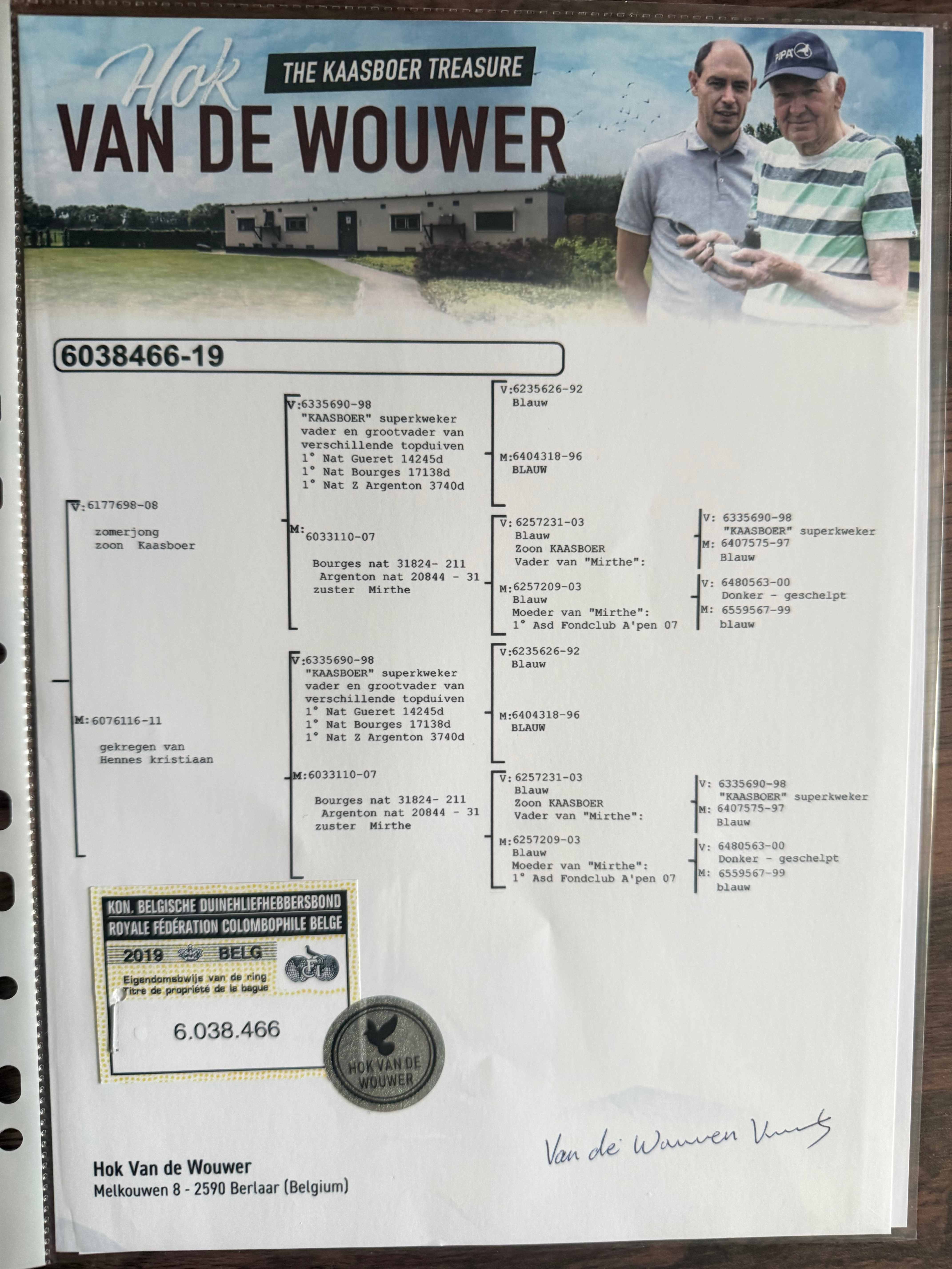 1615547 血统:利奥.赫尔曼斯 本身成绩三关鸽王冠军 五关鸽王5名 ¥200元 1次