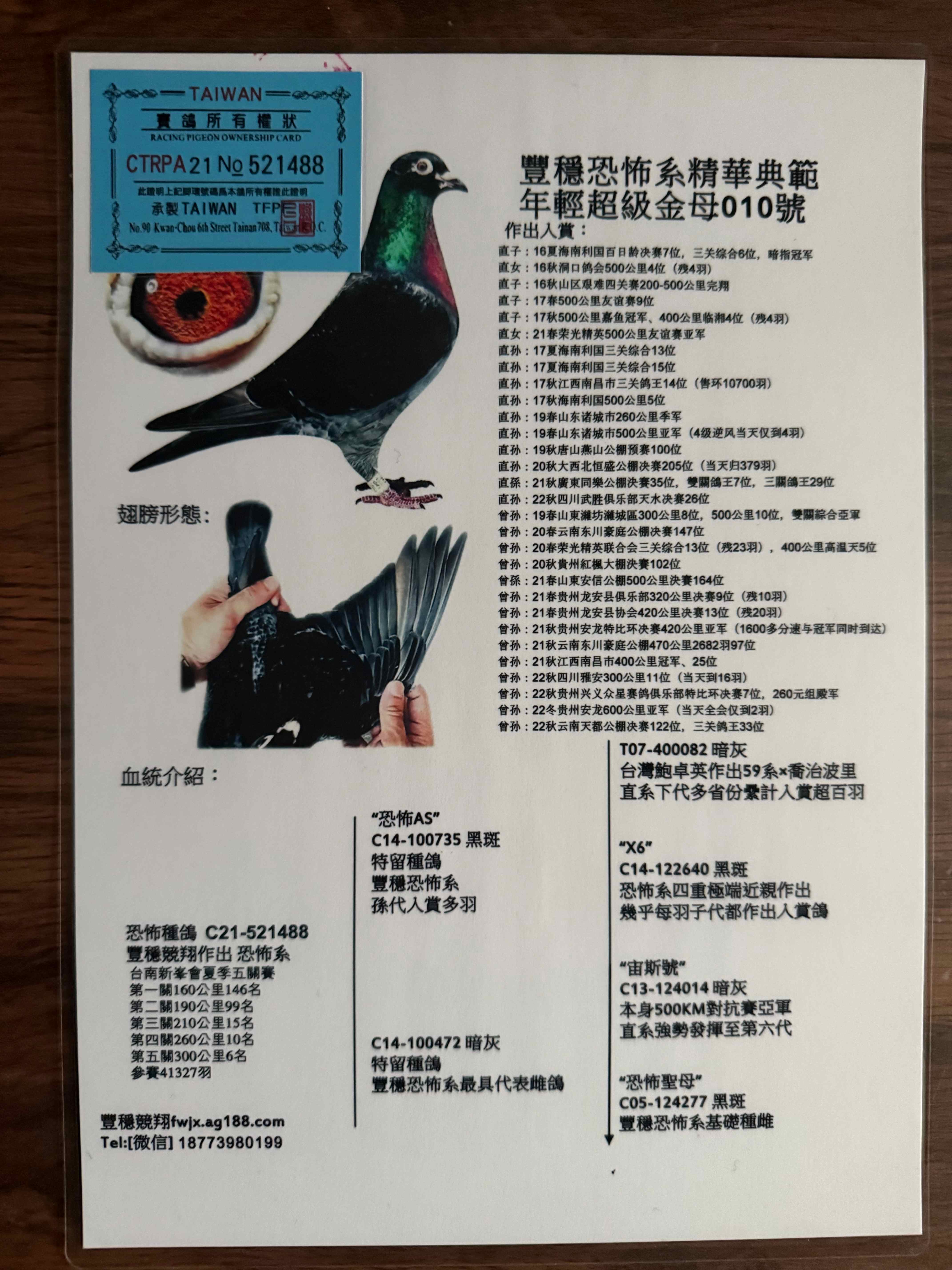 - 当前查看拍卖鸽:台湾丰稳竞翔作出”恐怖系“本身300公里