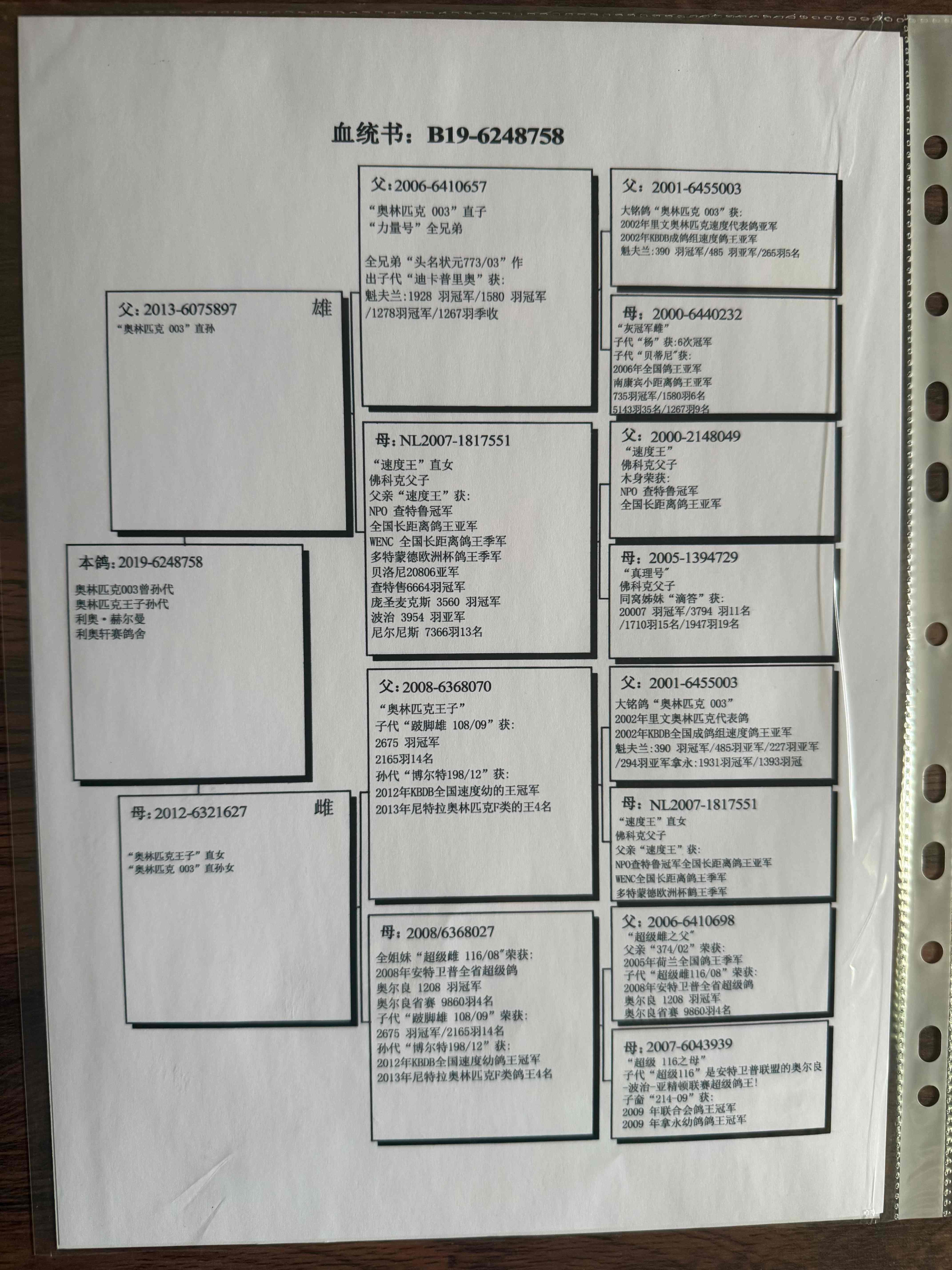 1615570 台湾强速鸽族传奇 ”詹森X芬妮卡血系“ ¥0元 0次