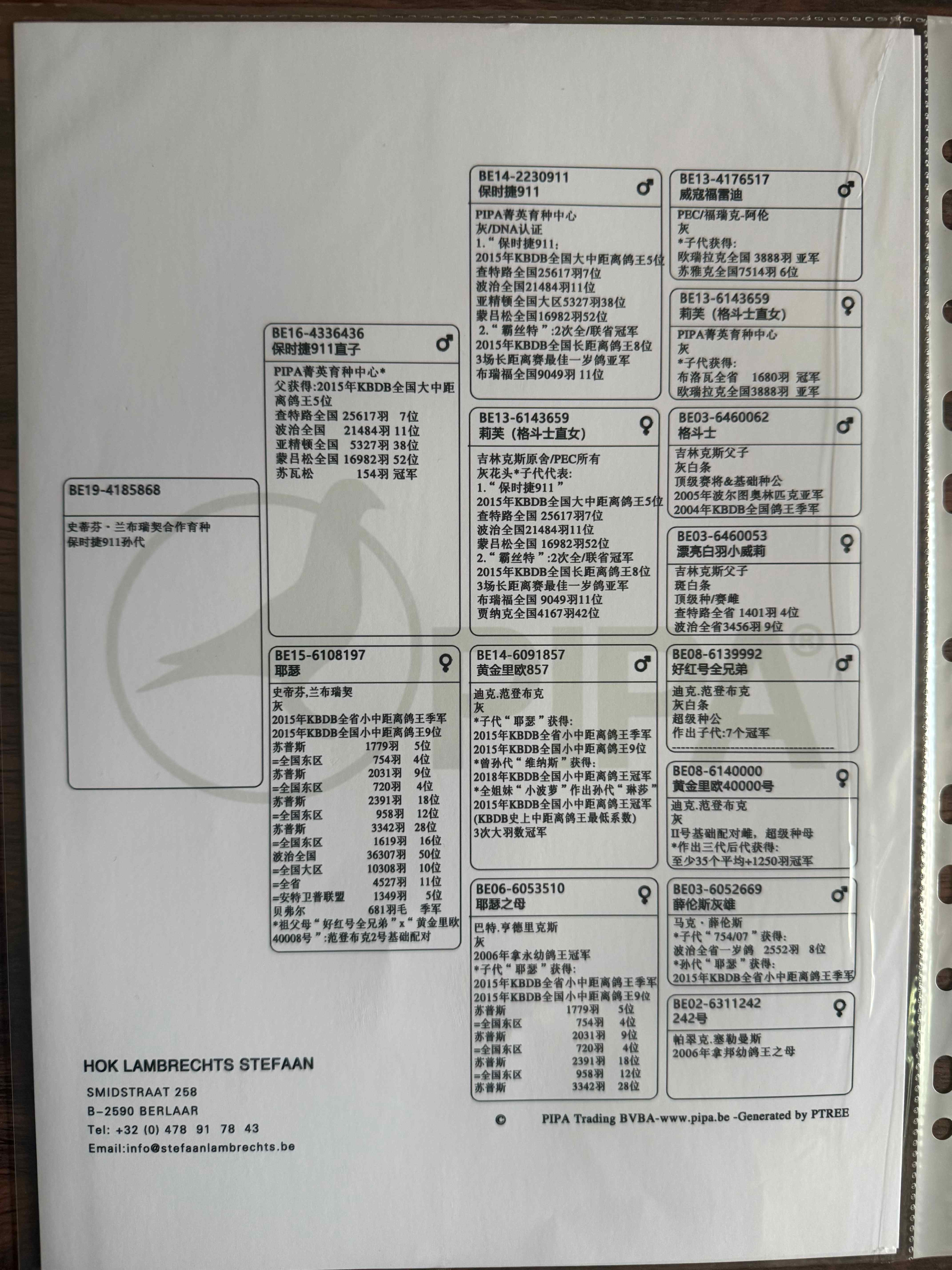 1615559 强烈推荐:血统:利奥.赫尔曼斯 本身成绩1000公里5名 ¥200元 1次
