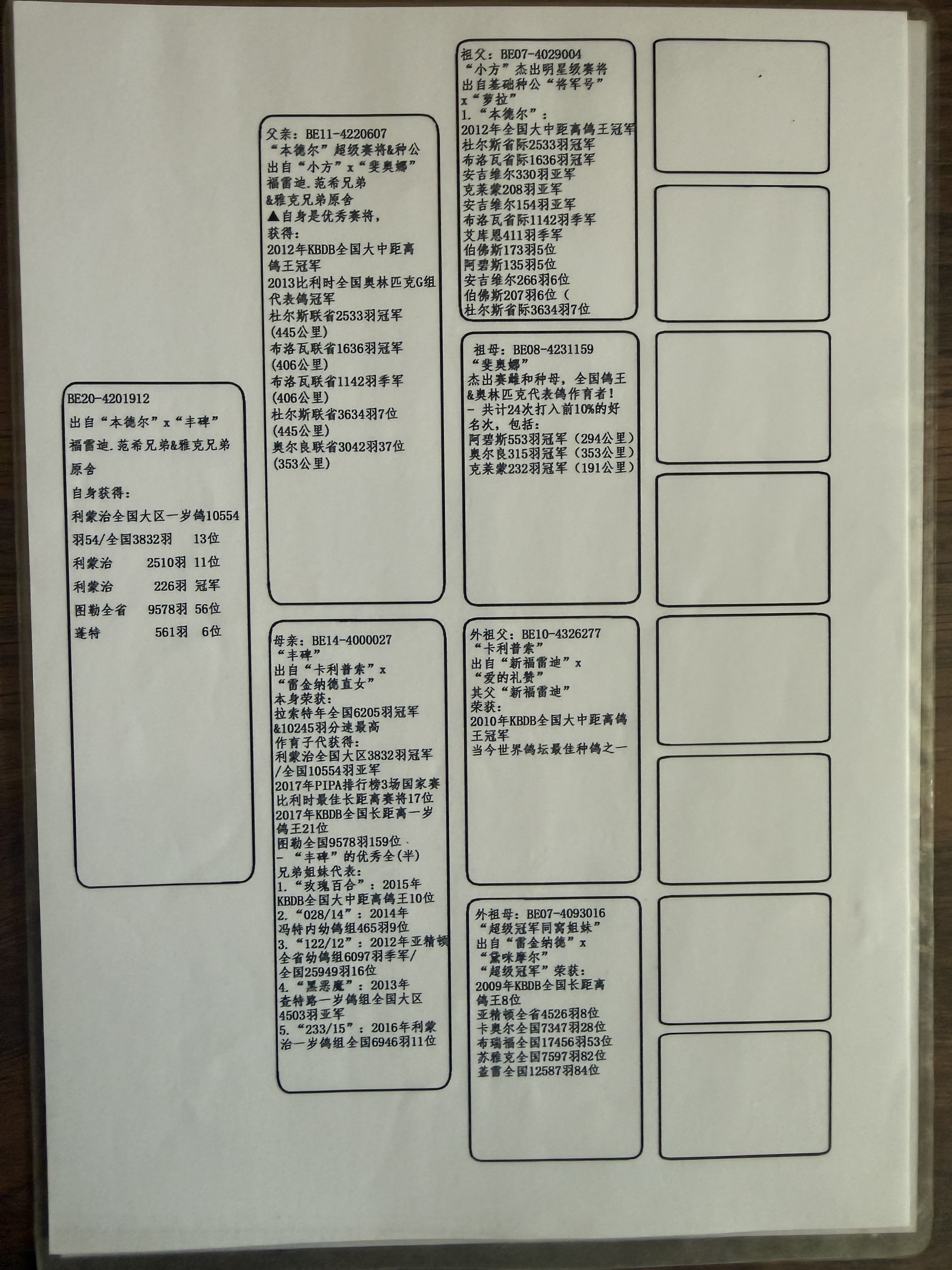 1615621 血统杨胡曼斯.哈利血系 本身获得:四关鸽王亚军 ¥0元 0次