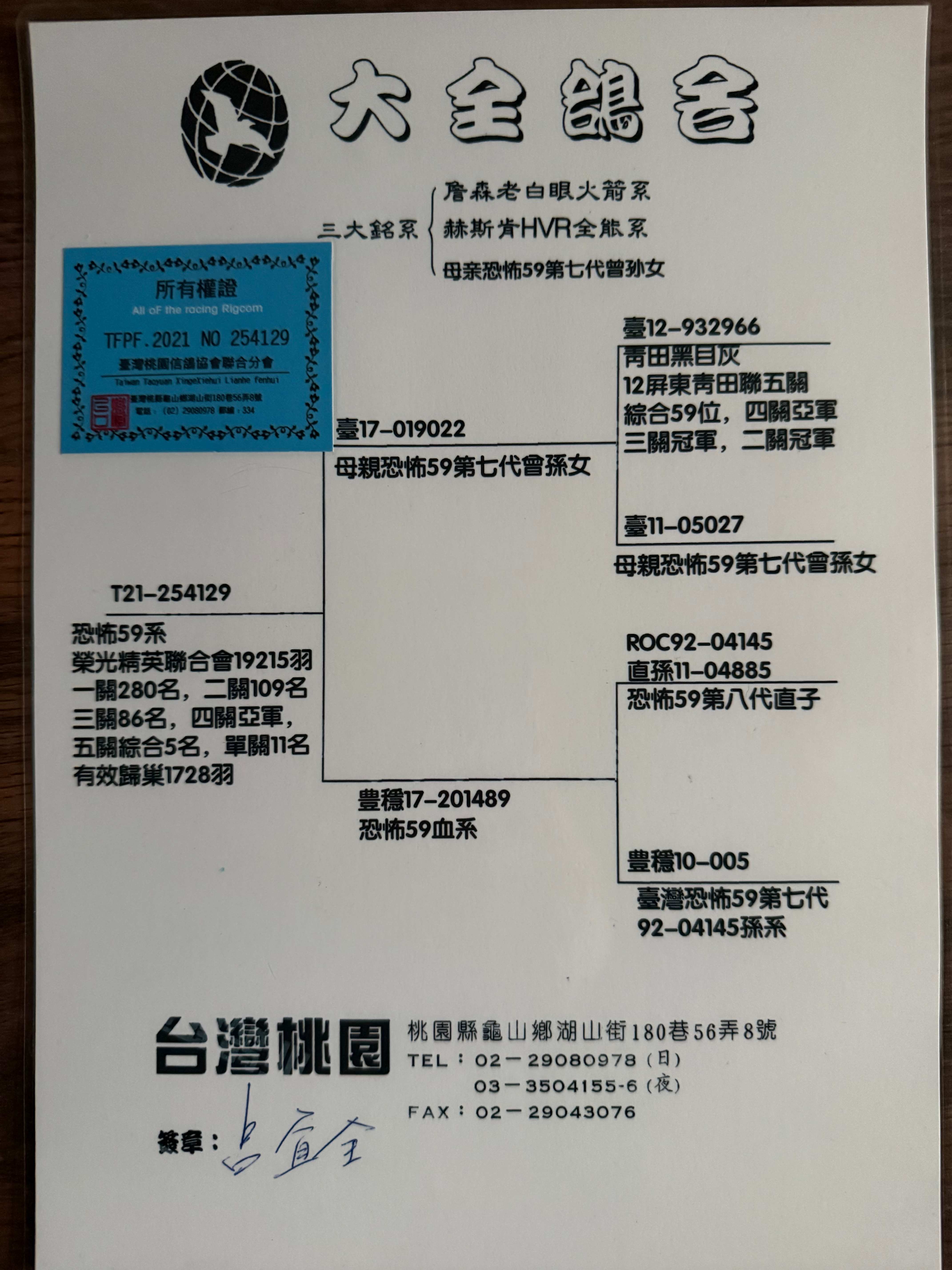 - 当前查看拍卖鸽:台湾大全鸽舍“恐怖59系“作出 本身成