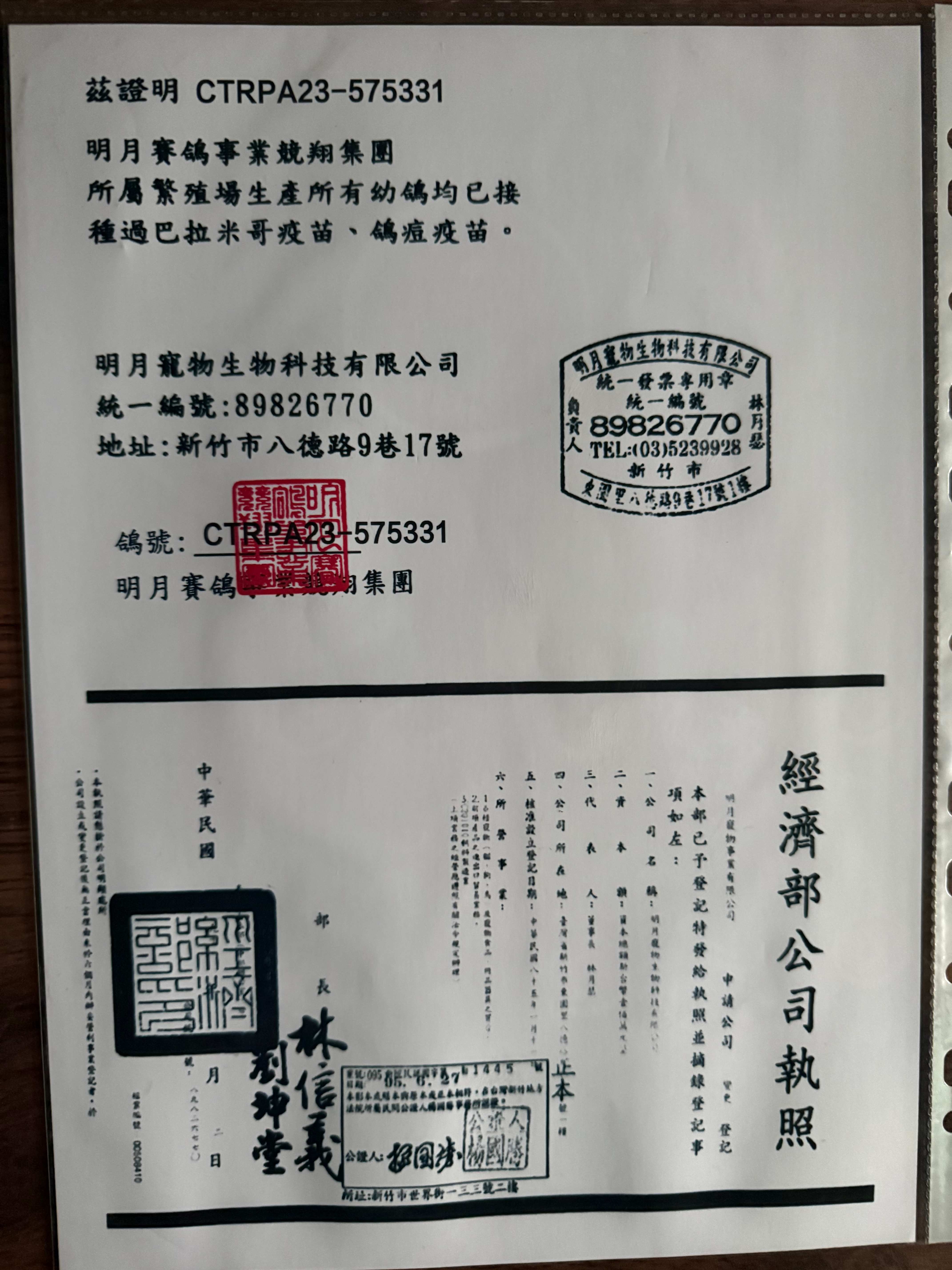 1615756 台湾强速鸽族”天子之剑“ 本身成绩:四关鸽王季军 ¥0元 0次