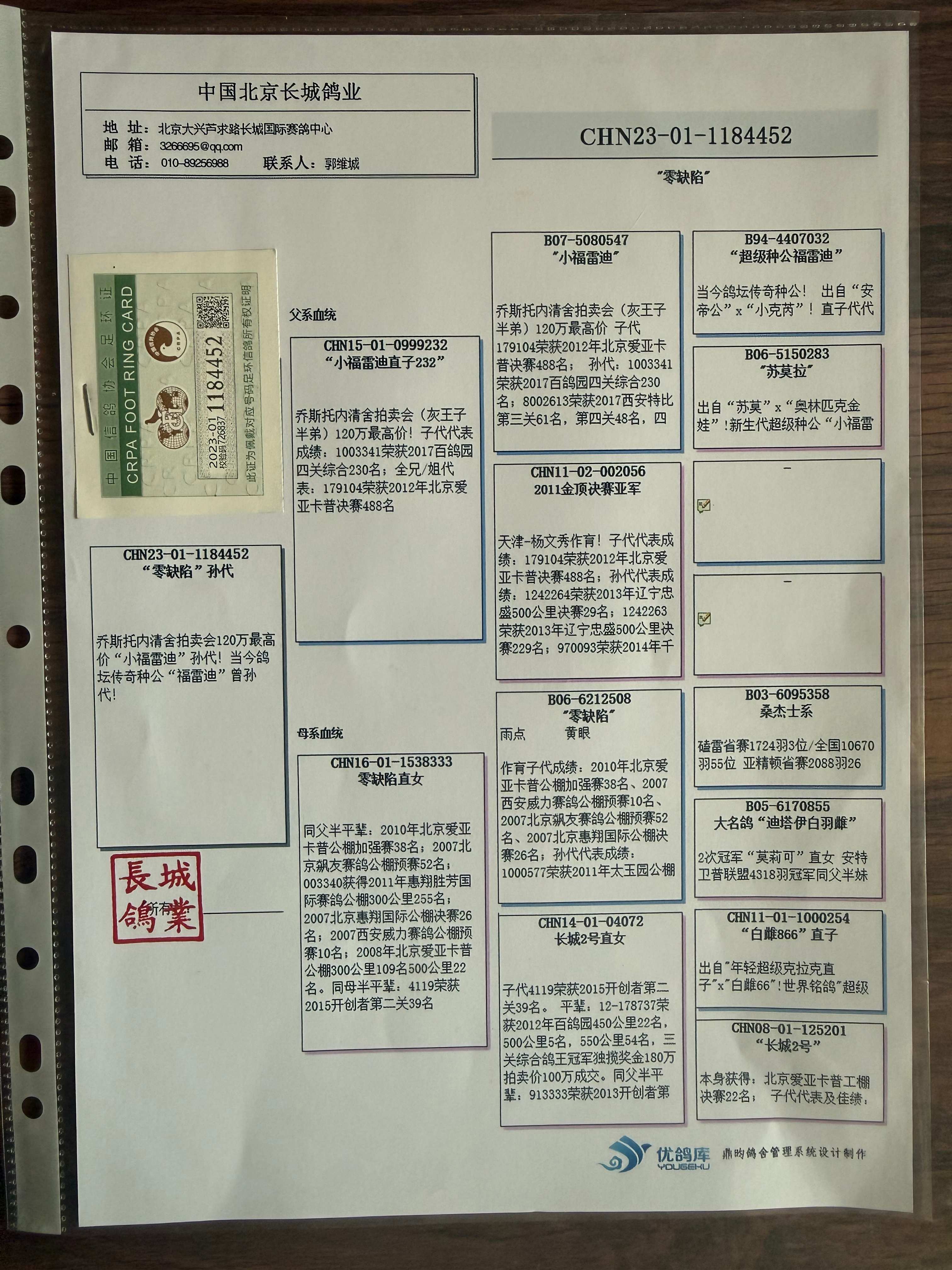 | 1615789 | 血统:葛斯顿.奶酪小子 本身成绩:四关鸽王亚军 | ¥0元 | 0次 |