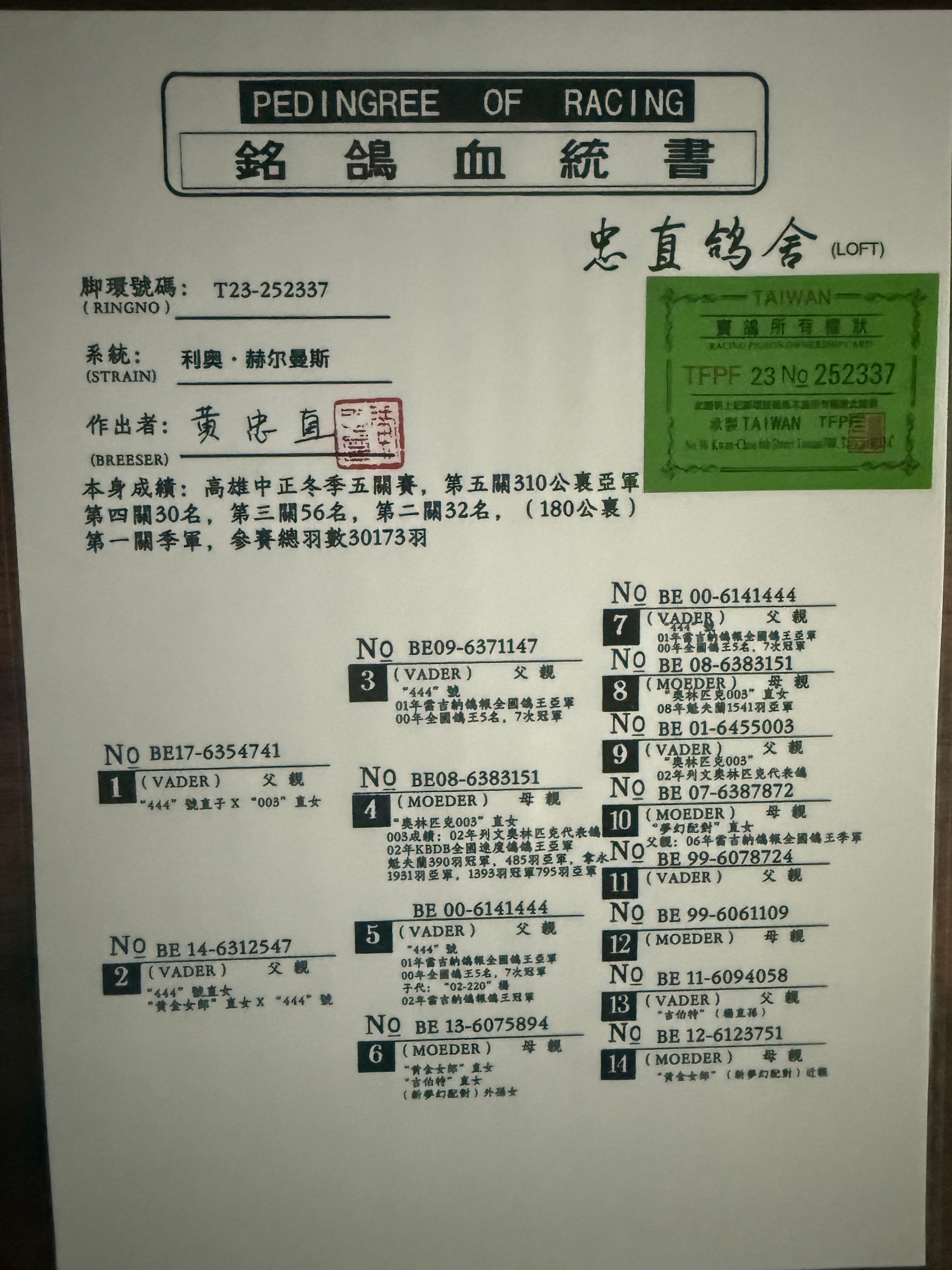 | 1615781 | 台湾强速鸽族传奇 ”詹森X芬妮卡血系“ | ¥0元 | 0次 |