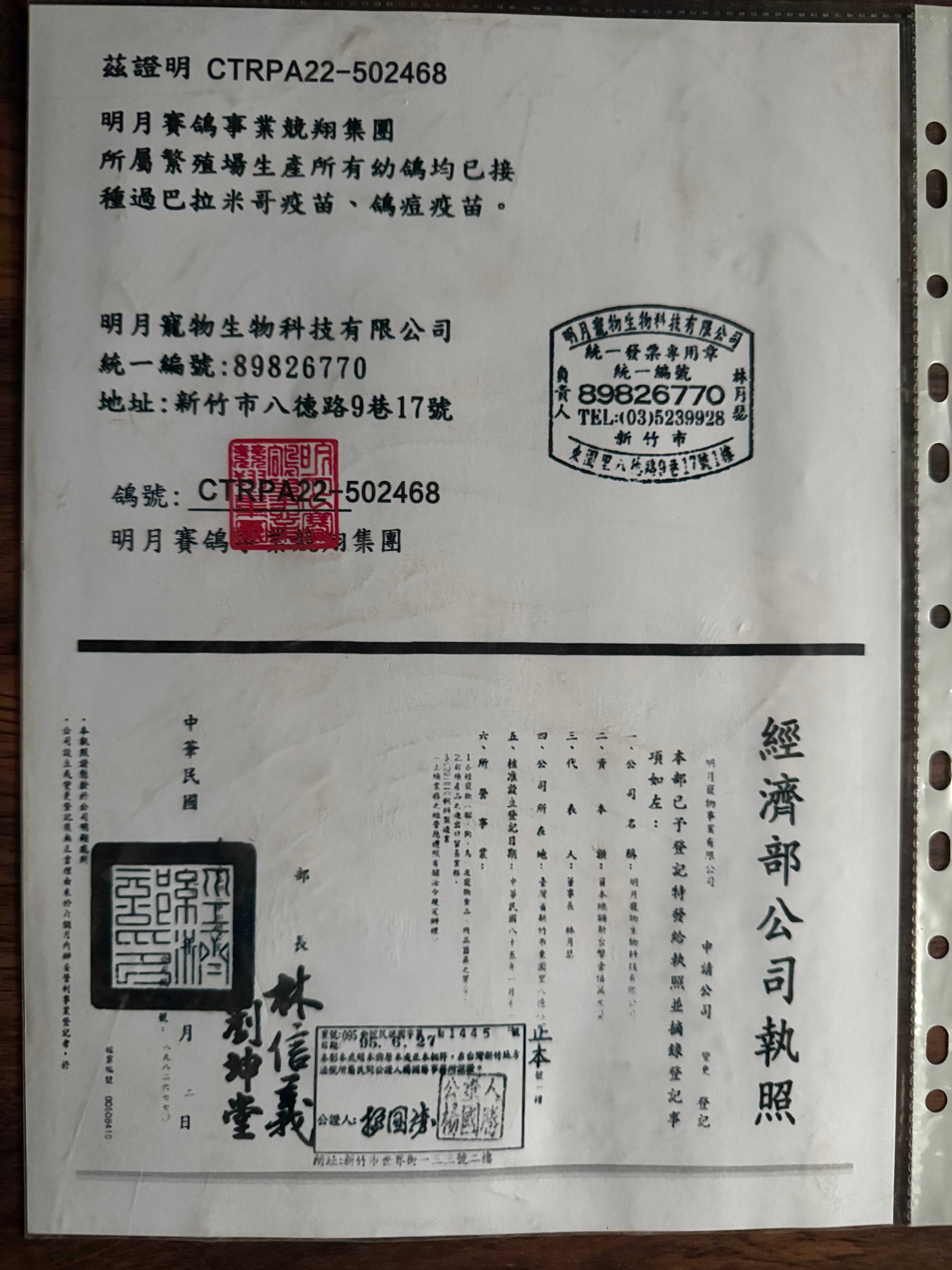 | 1615781 | 台湾强速鸽族传奇 ”詹森X芬妮卡血系“ | ¥0元 | 0次 |