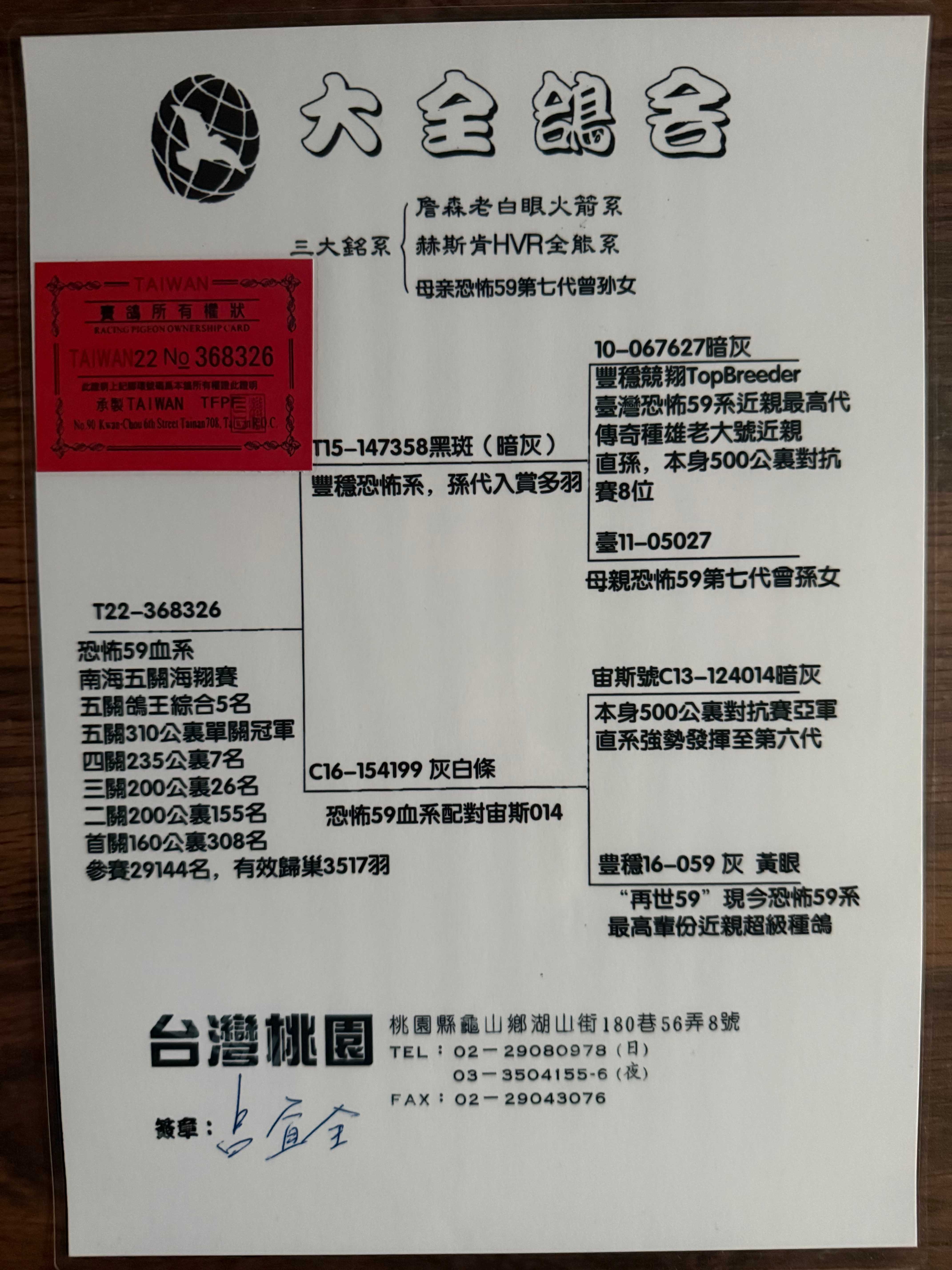 - 当前查看拍卖鸽:台湾大全鸽舍”恐怖59血系“ 本身五关鸽