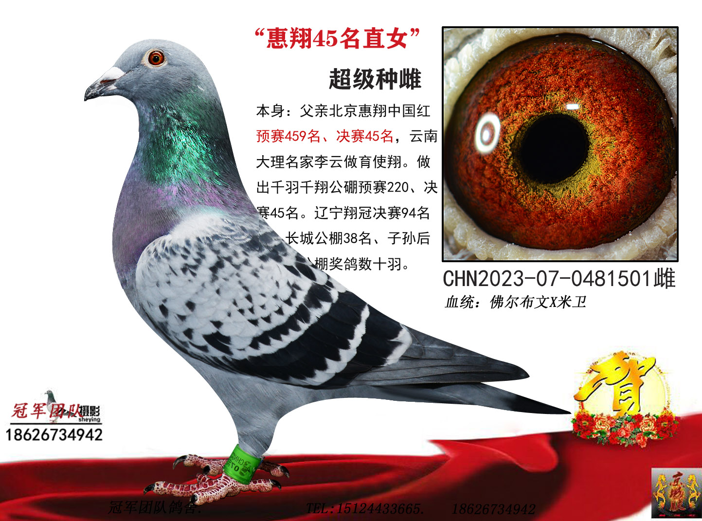 血统书足环卡随鸽发出,低价位高品质幼鸽,种赛皆宜。良心做人,所有成绩血统假一赔百,不做虚假宣传!当暧赘氪菩塾啥嗄昃楹屯雅卸辖龉┎慰迹�
