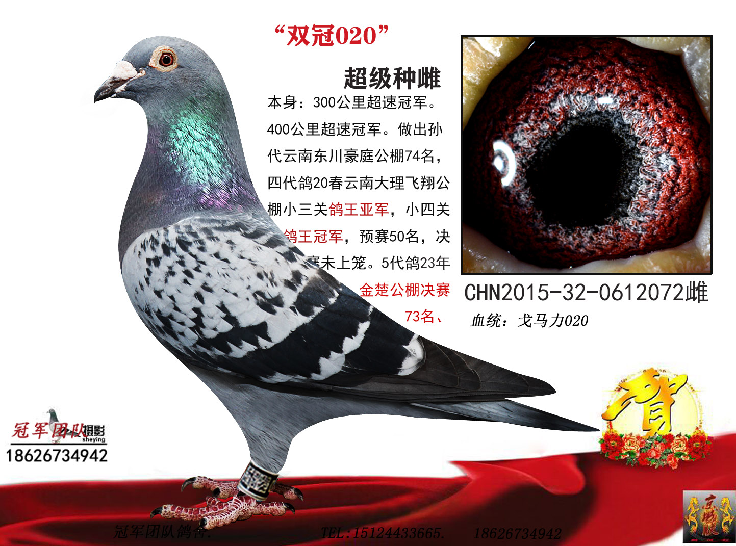 空间有限0元分享,假一赔百,拒卖百家鸽。机不可失。成绩、血统永久保真。血统书足环卡随鸽发出。