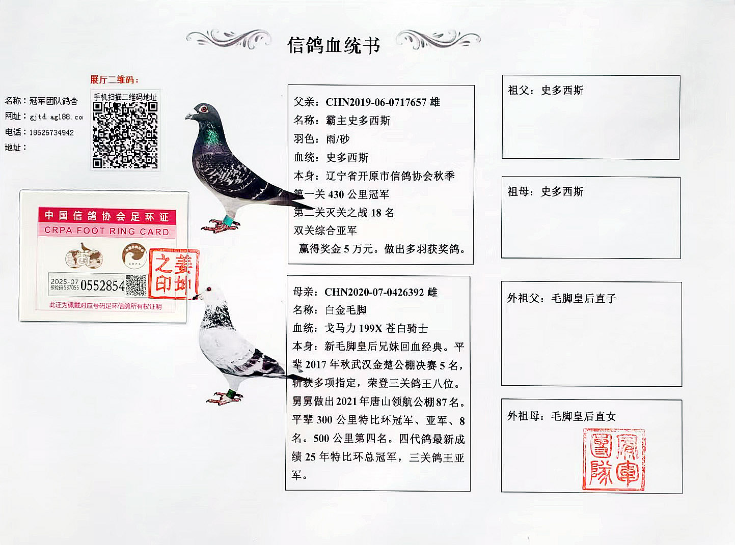 - 当前查看拍卖鸽:冠军史多西斯X白金毛脚