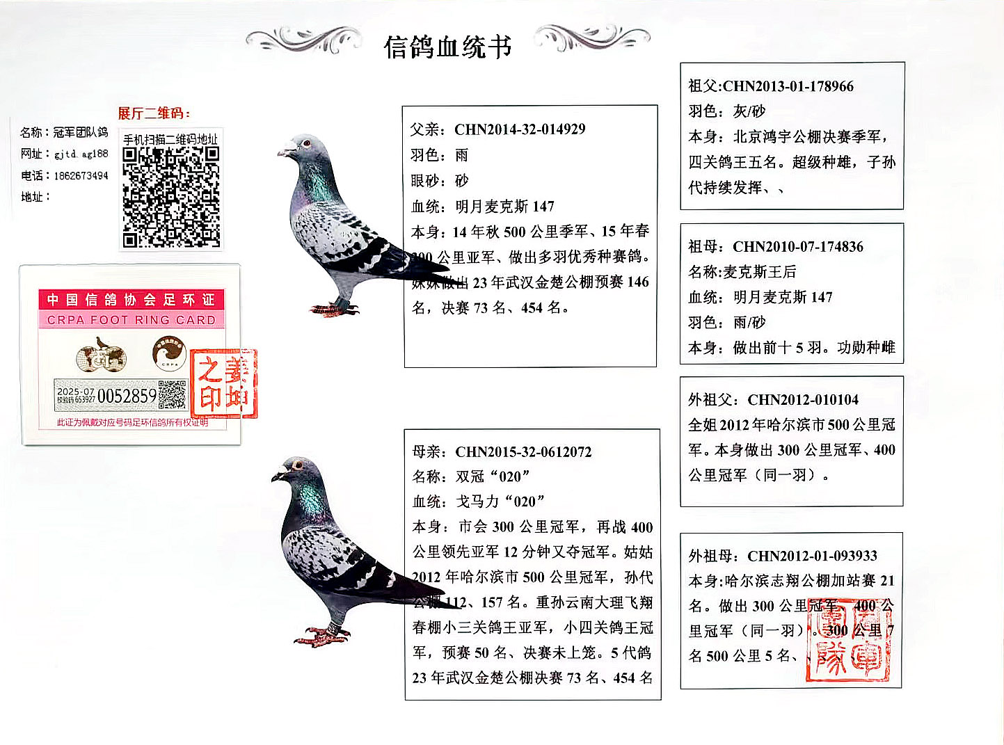 空间有限0元分享,假一赔百,拒卖百家鸽。机不可失。成绩、血统永久保真。血统书足环卡随鸽发出。