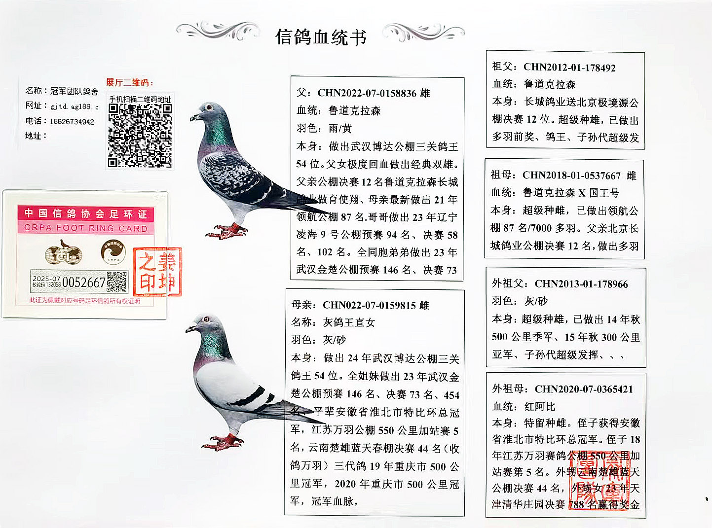 空间有限0元分享,假一赔百,拒卖百家鸽。机不可失。成绩、血统永久保真。血统书足环卡随鸽发出。