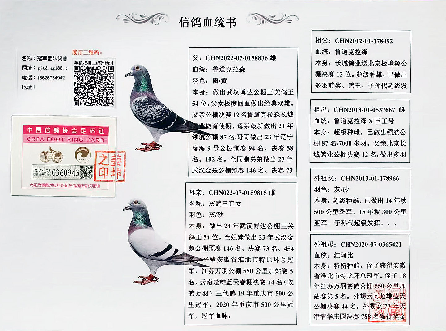 空间有限0元分享,假一赔百,拒卖百家鸽。机不可失。成绩、血统永久保真。血统书足环卡随鸽发出。